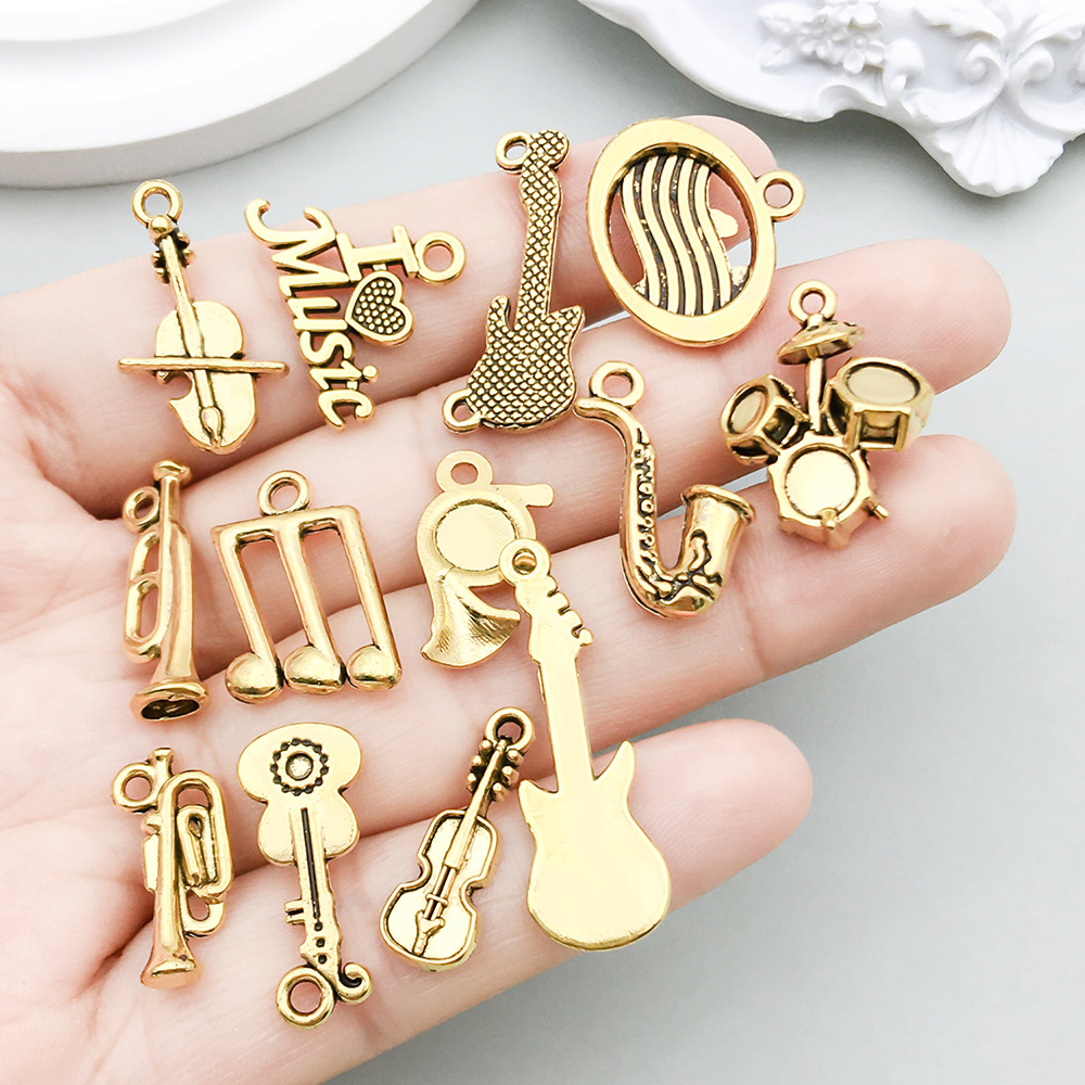 - Instrument de musique en forme de pendentifs en alliage de Zinc, instruments de musique, Plaqué de couleur d'argent
