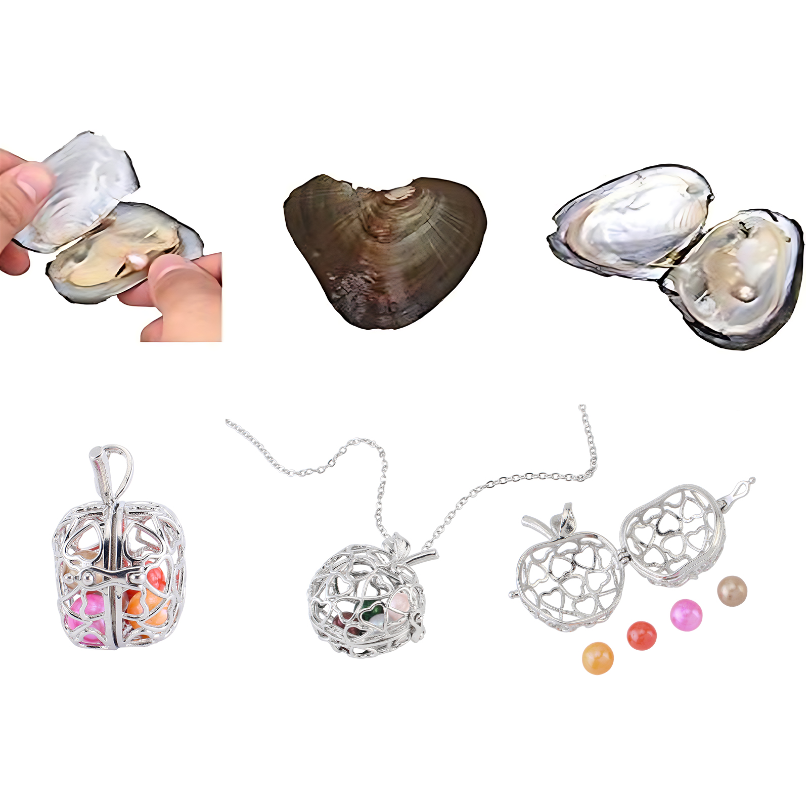 Kit de perles Oyster & Wish, perle d'eau douce cultivée, collier, styles différents pour le choix, couleurs mélangées, 170x120x30mm, Environ 10PC/sac, Vendu par sac