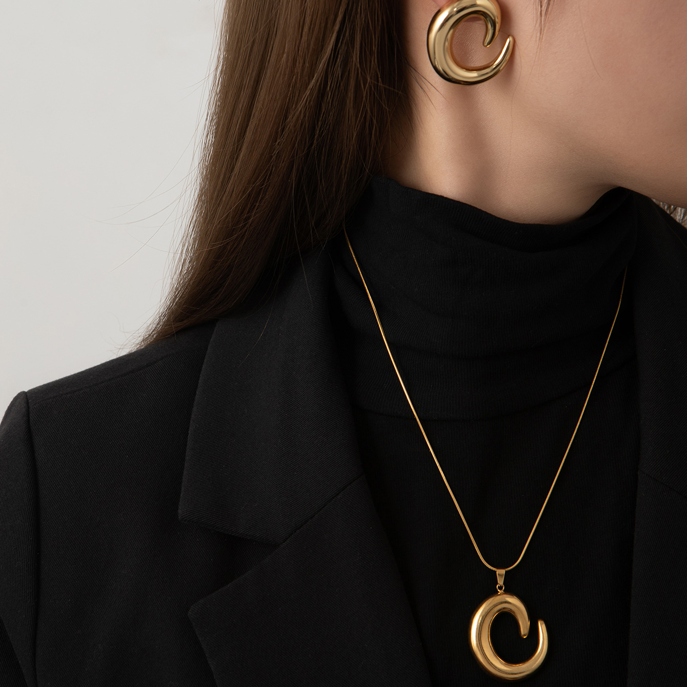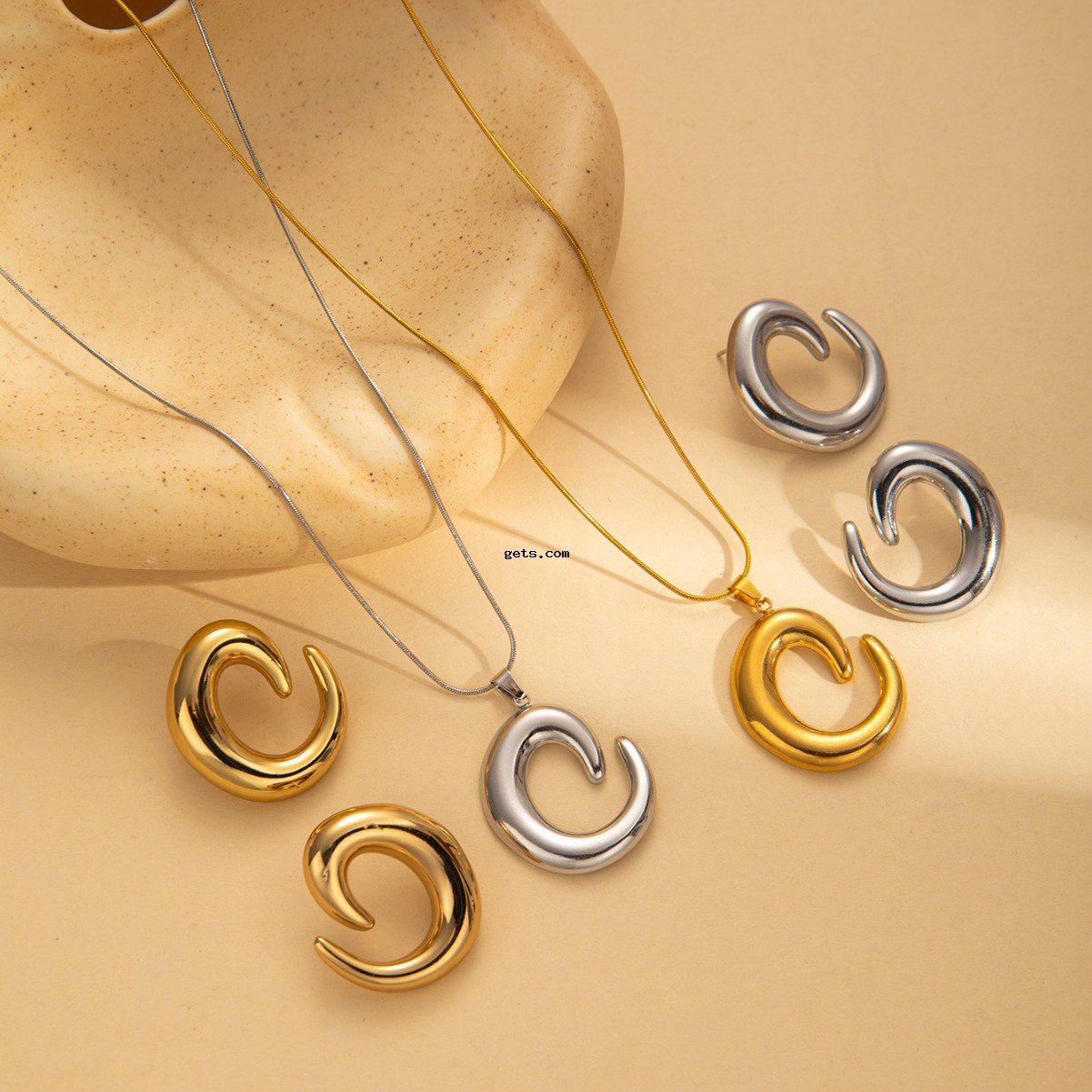 - Parures de bijoux en acier inoxydable, Boucle d’oreille stud & collier, Acier inoxydable 304