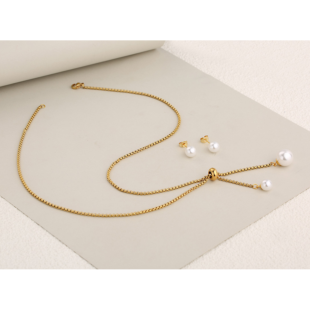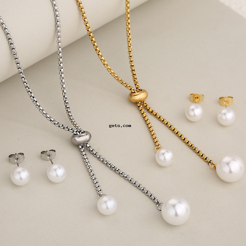 Parures de bijoux en acier inoxydable, Boucle d’oreille stud & collier, Acier inoxydable 304, avec perle de plastique, Placage, 2 pièces & bijoux de mode & pour femme, plus de couleurs à choisir, Vendu par fixé