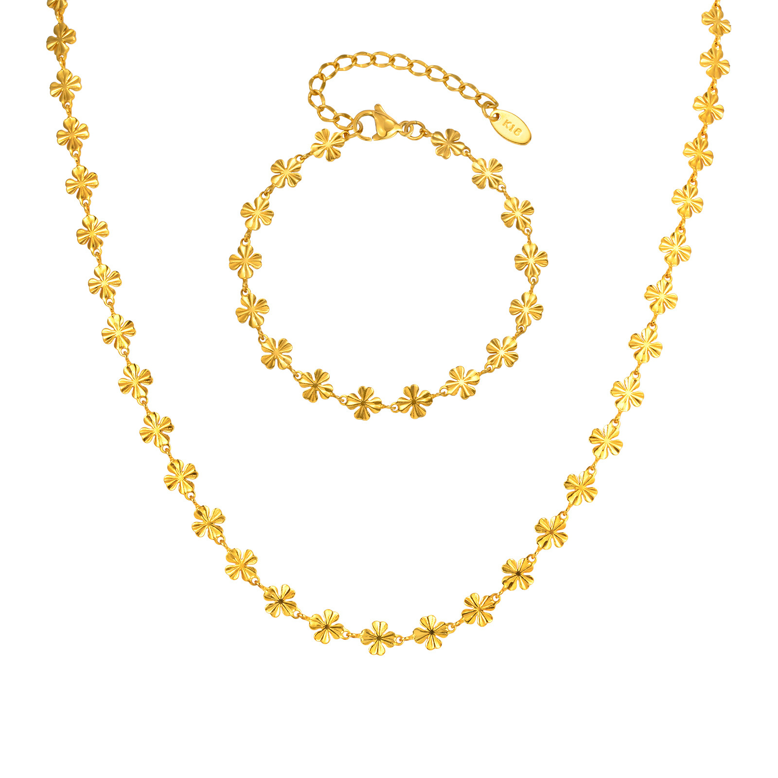 Parures de bijoux en acier inoxydable, Acier inoxydable 304, fleur, Placage de couleur d'or, bijoux de mode & styles différents pour le choix & pour femme, Vendu par PC