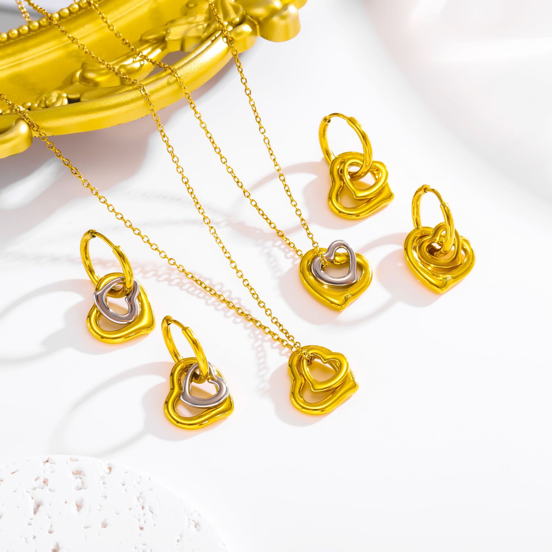 Gold   large and small heart necklaceSteel   large and small heart necklaceBetween gold   size love necklaceGold   large and small heart-shaped earringsSteel   large and small heart-shaped earringsBetween gold   size love earrings