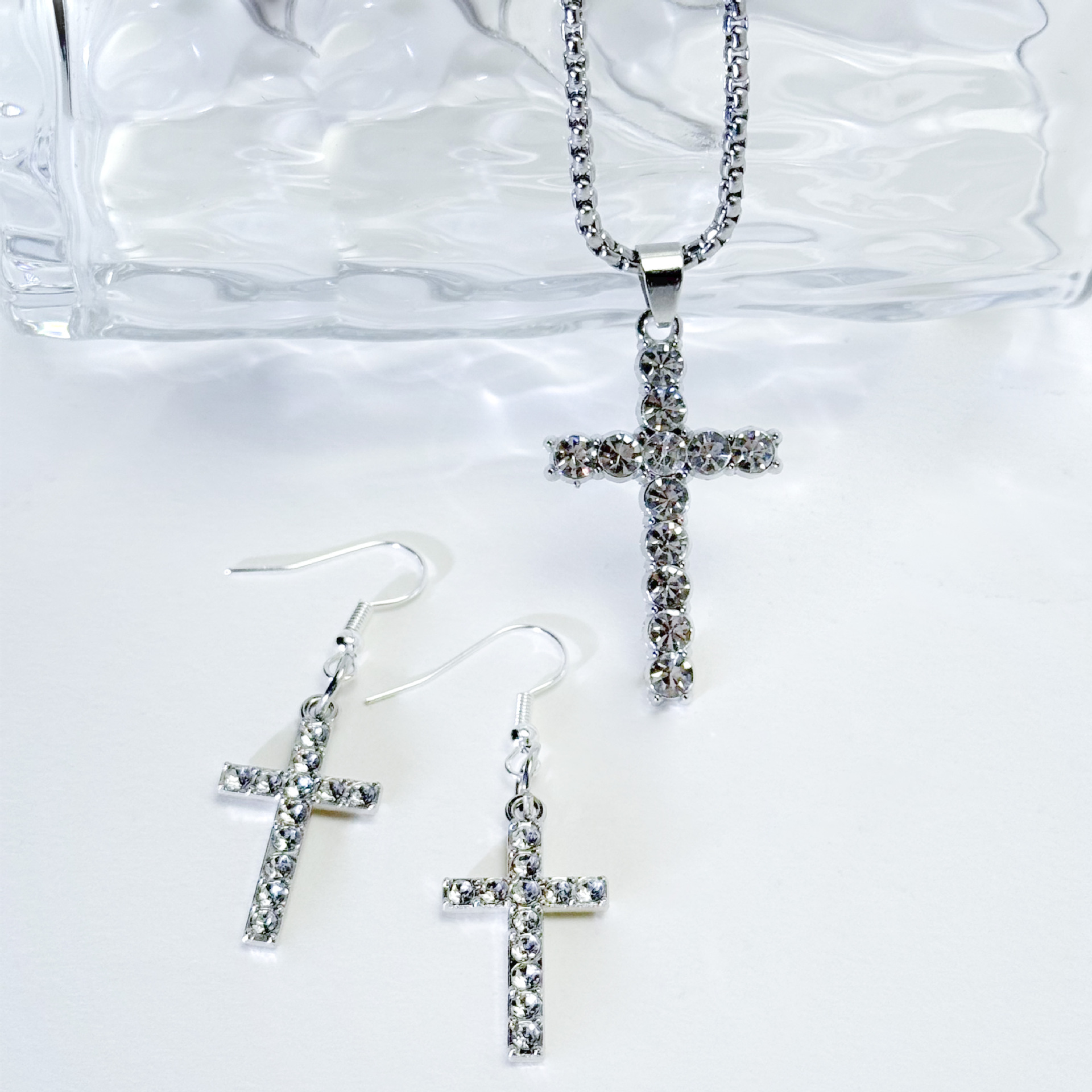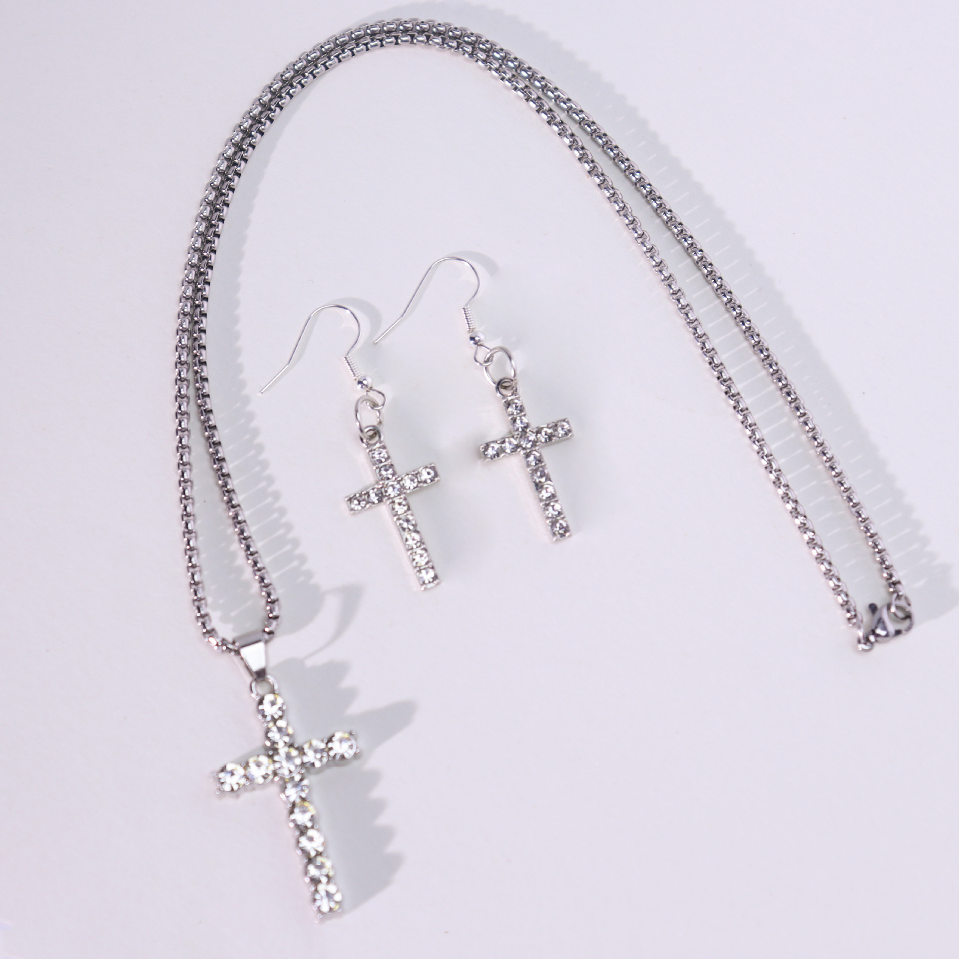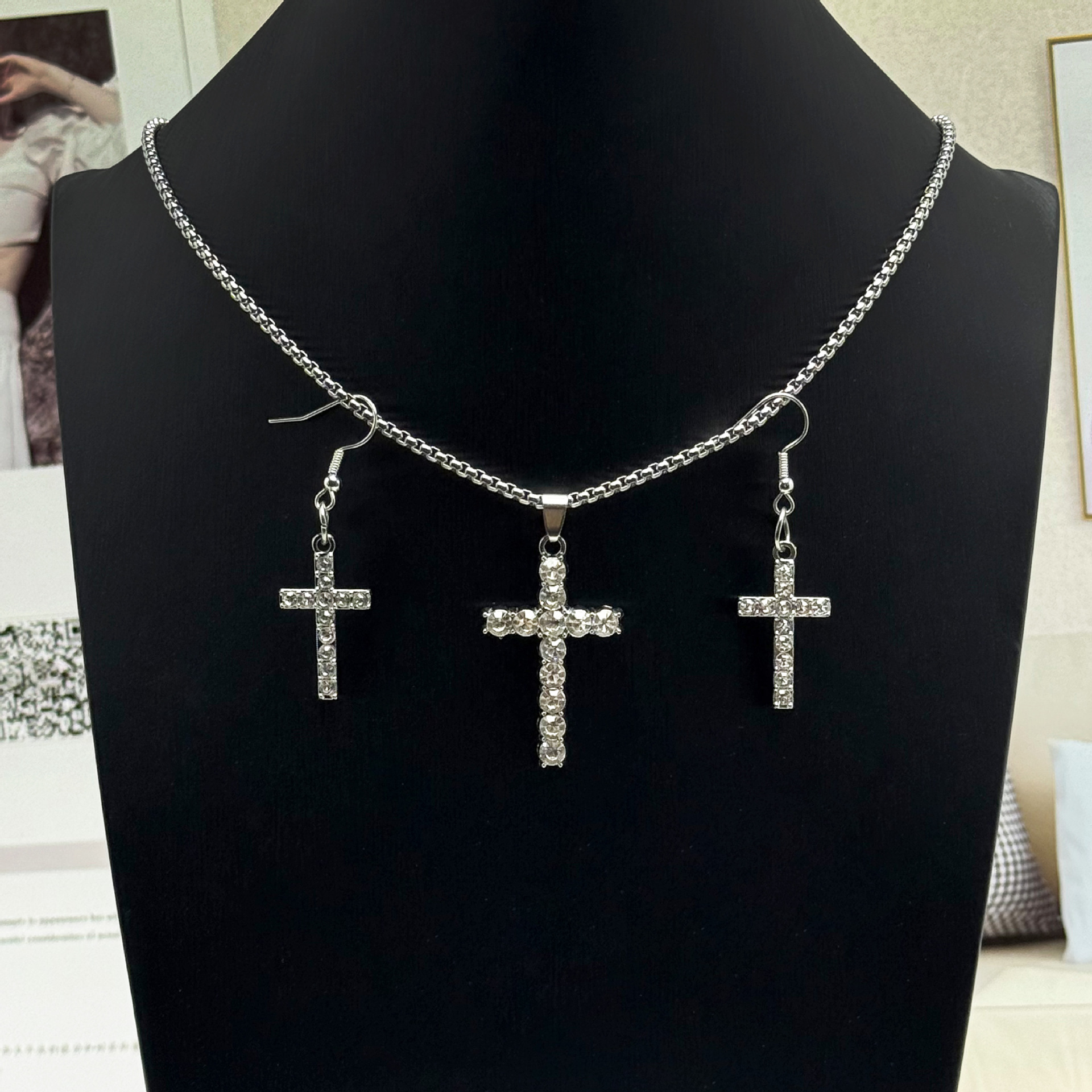 Parures de bijoux en alliage zinc, boucle d'oreille & collier, alliage de zinc, croix, Placage de couleur d'or, bijoux de mode & avec strass, plus de couleurs à choisir, Vendu par PC