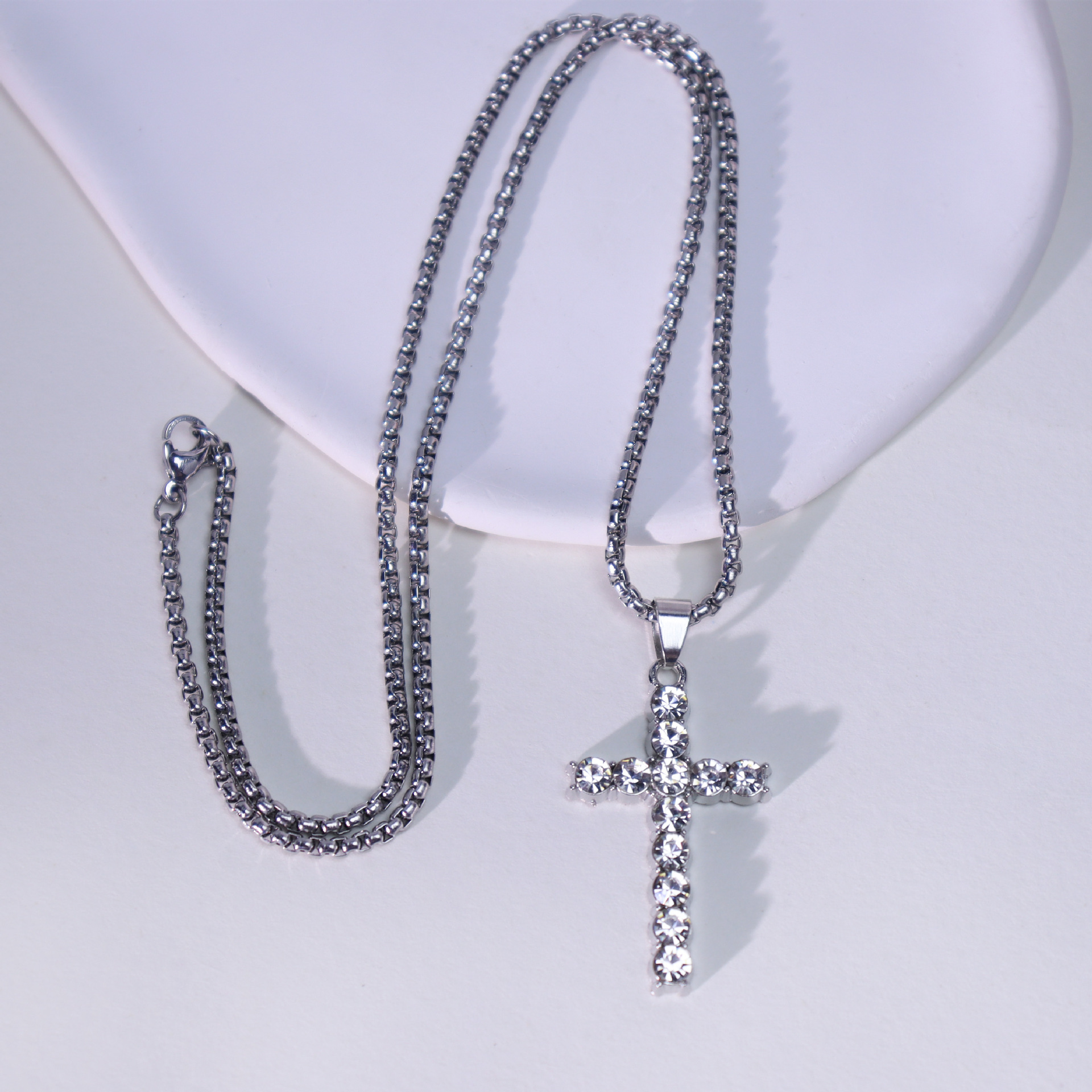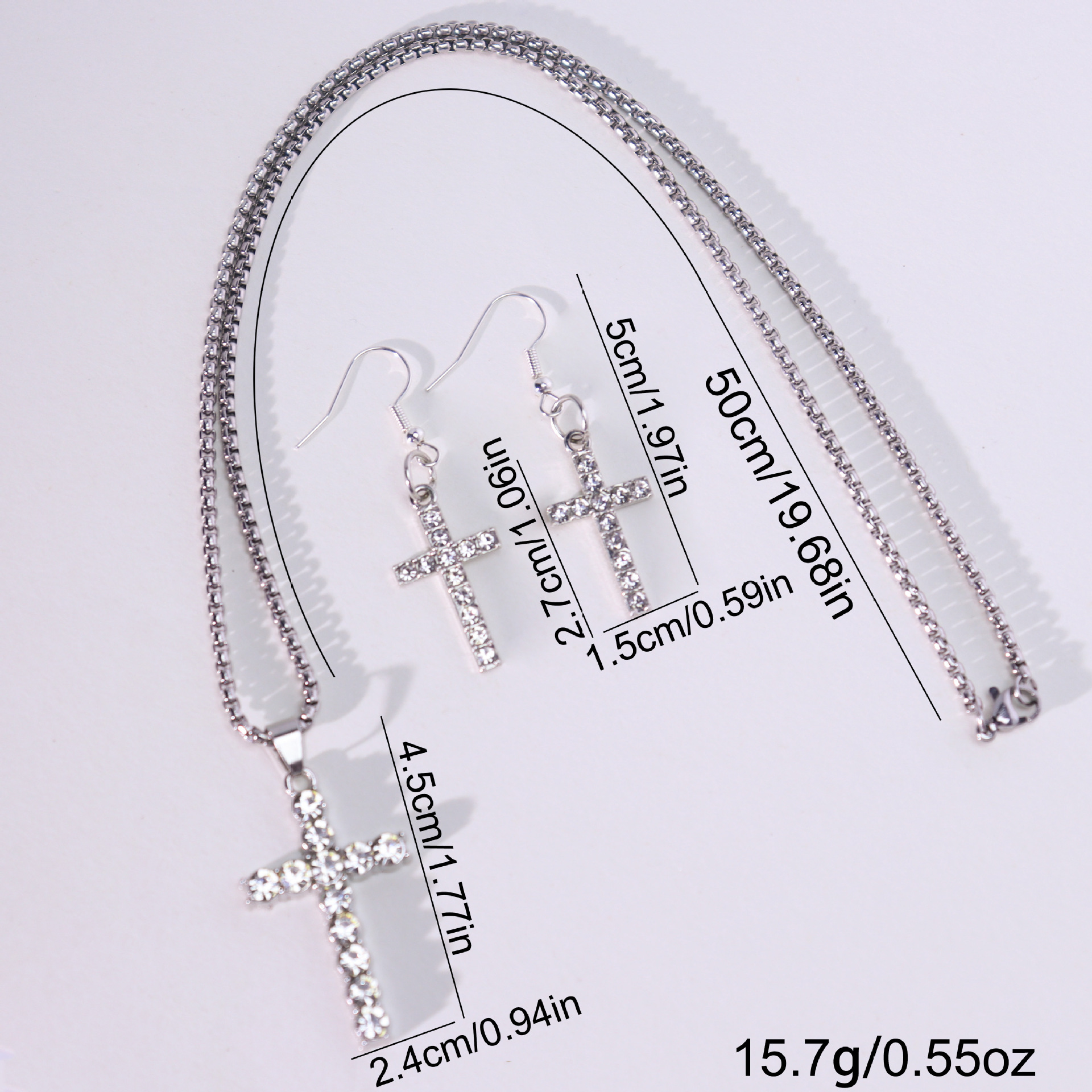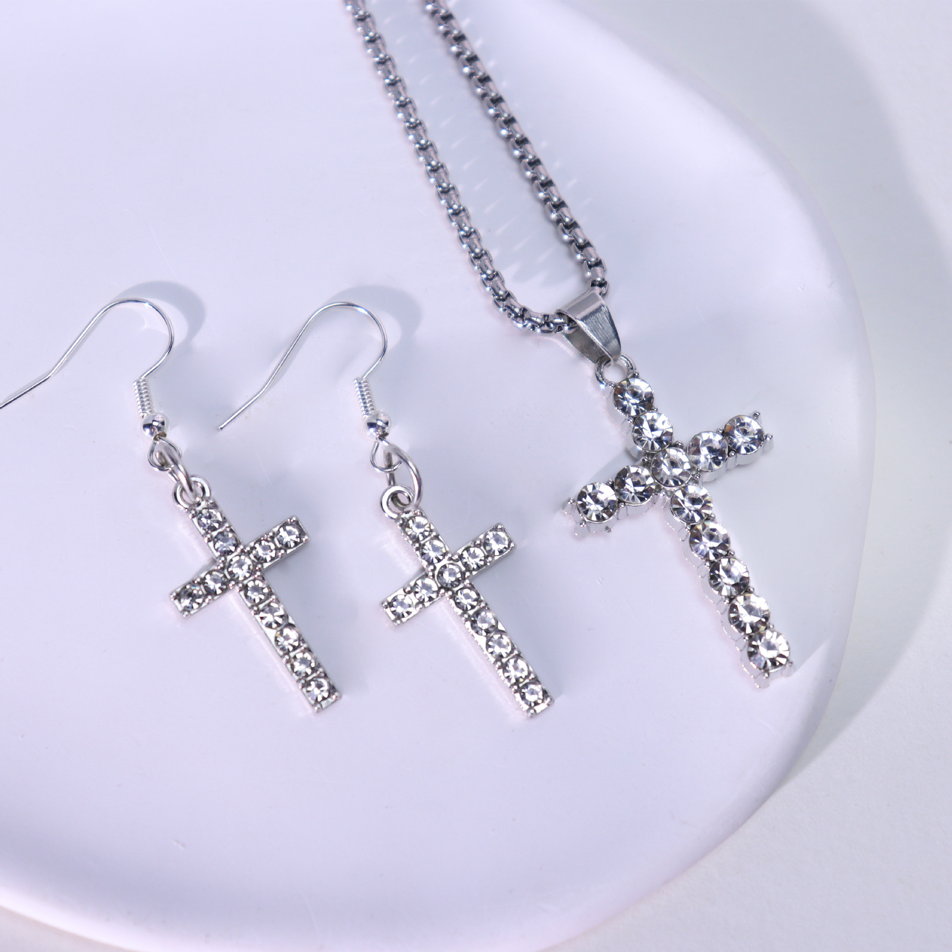 Parures de bijoux en alliage zinc, boucle d'oreille & collier, alliage de zinc, croix, Placage de couleur d'or, bijoux de mode & avec strass, plus de couleurs à choisir, Vendu par PC