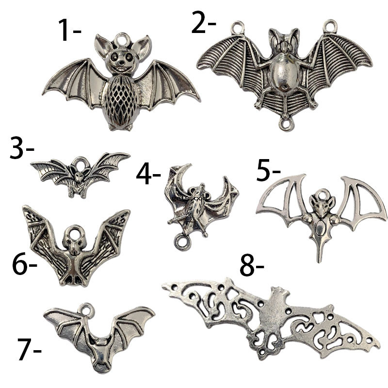 Pendant Halloween Fashion, alliage de zinc, Chauve-souris, Plaqué de couleur d'argent, style gothique & DIY & styles différents pour le choix, 100PC/sac, Vendu par sac