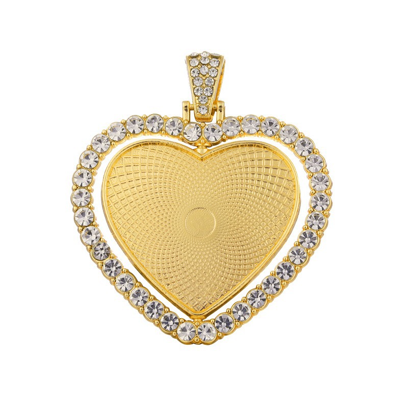 Pendentif en alliage de zinc Cabochon Cadre, coeur, Placage de couleur d'or, unisexe & avec strass, plus de couleurs à choisir, protéger l'environnement, sans nickel, plomb et cadmium, 30mm, Environ 50PC/sac, Vendu par sac