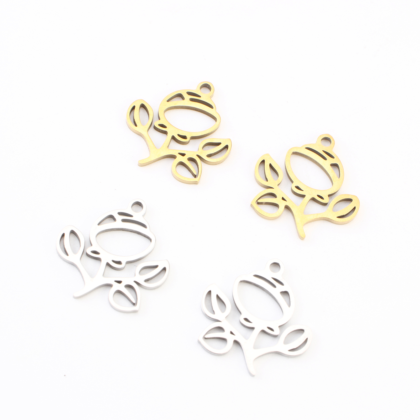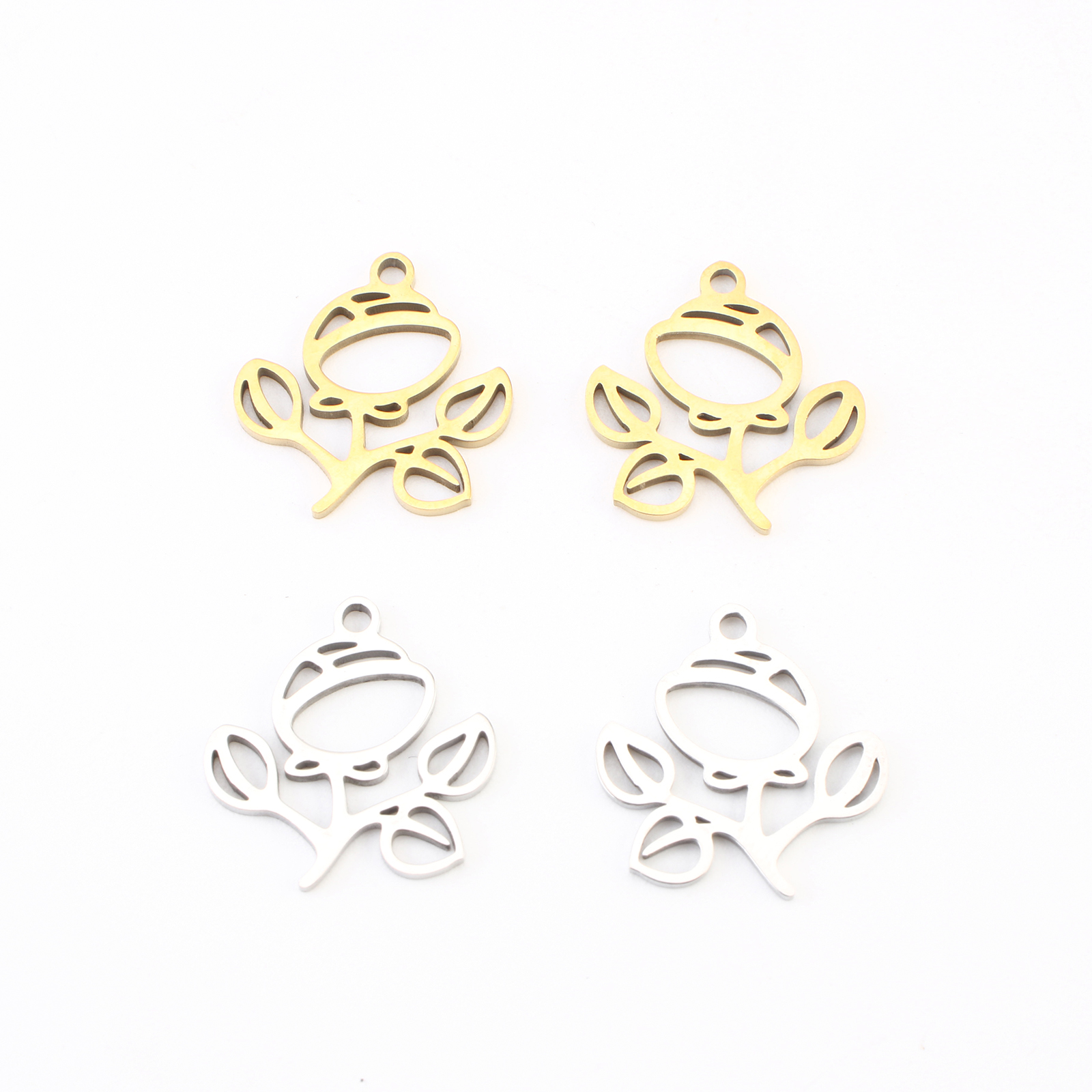 - Pendentif fleur en acier inoxydable, Placage, creux