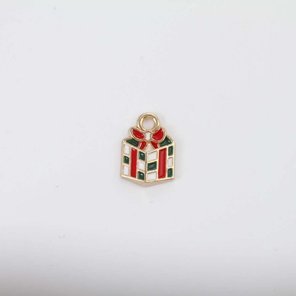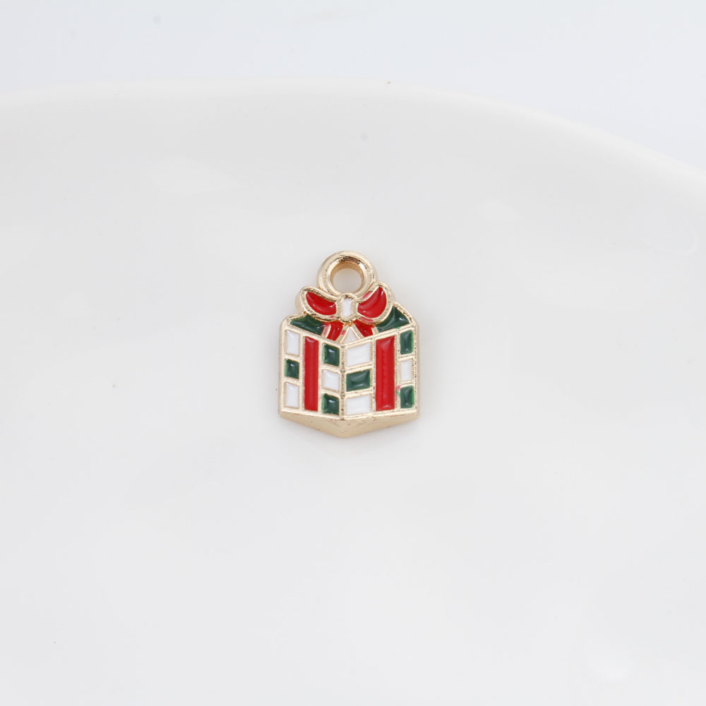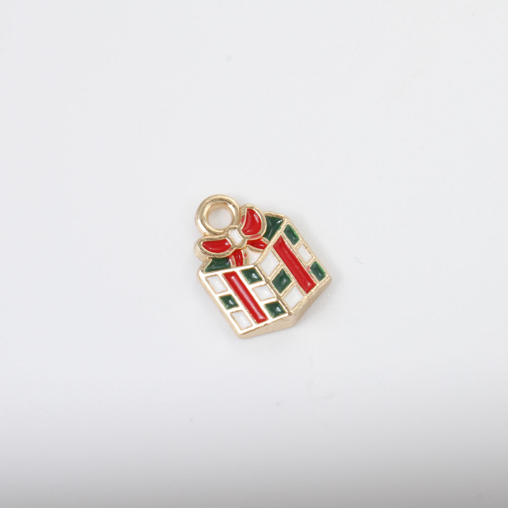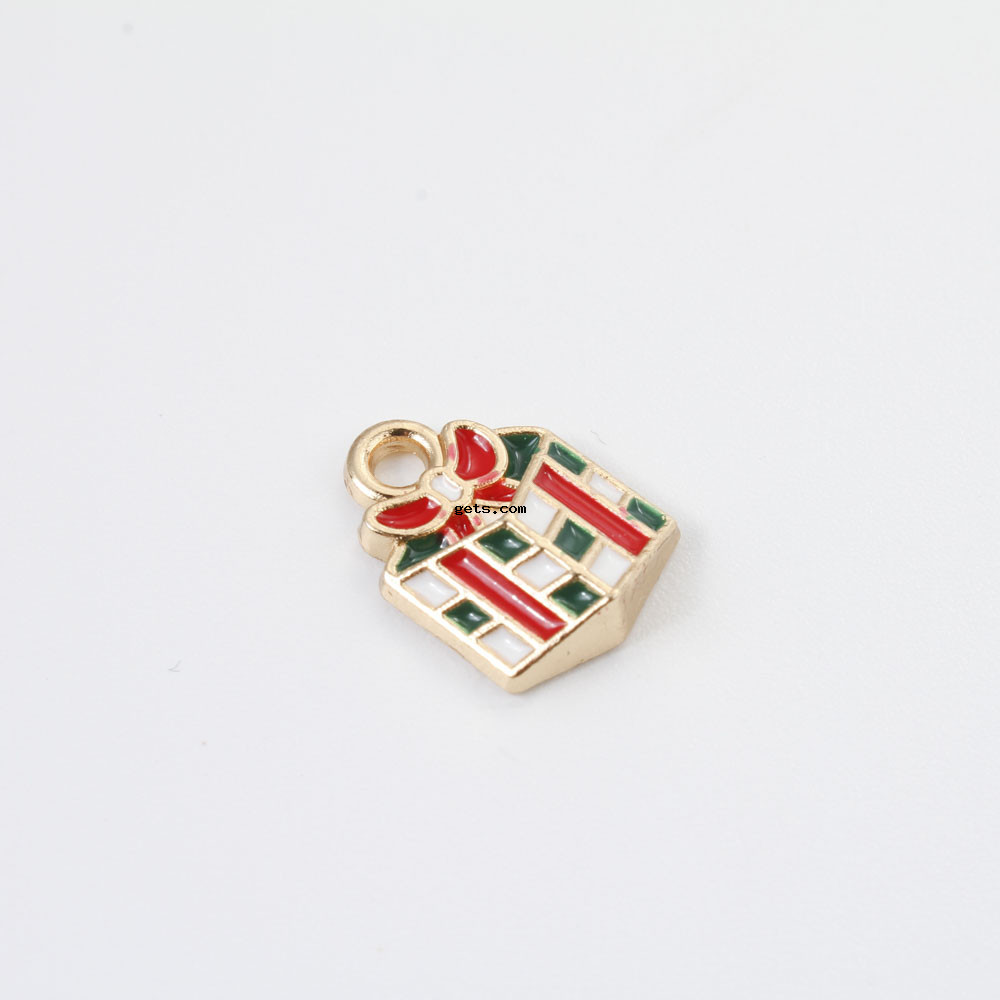 Pendentifs Noël en alliage de zinc, En forme de boîte de cadeau, Placage de couleur d'or, Conception de Noël & DIY & émail, couleurs mélangées, 14x10x3.30mm, Vendu par PC