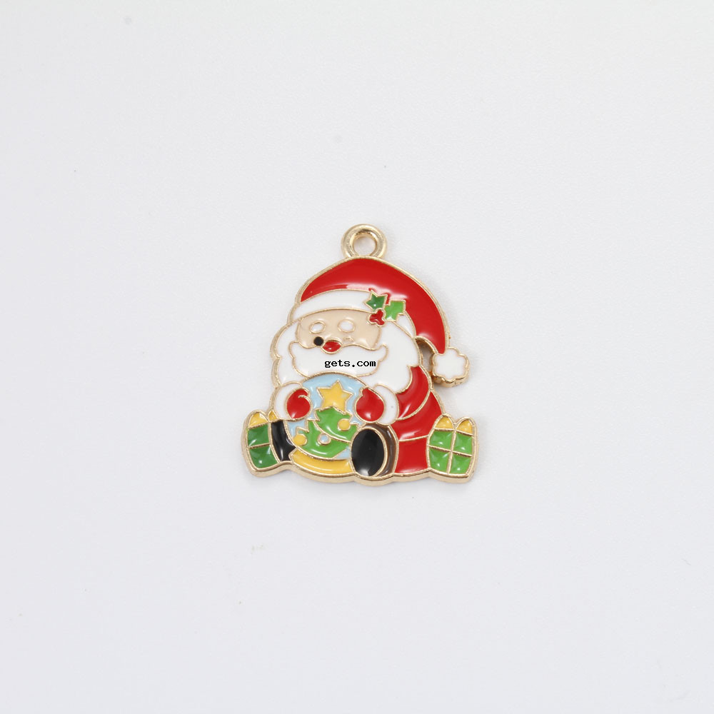Pendentifs Noël en alliage de zinc, le père noël, Placage de couleur d'or, DIY & émail, couleurs mélangées, 26.70x23x1.20mm, Vendu par PC