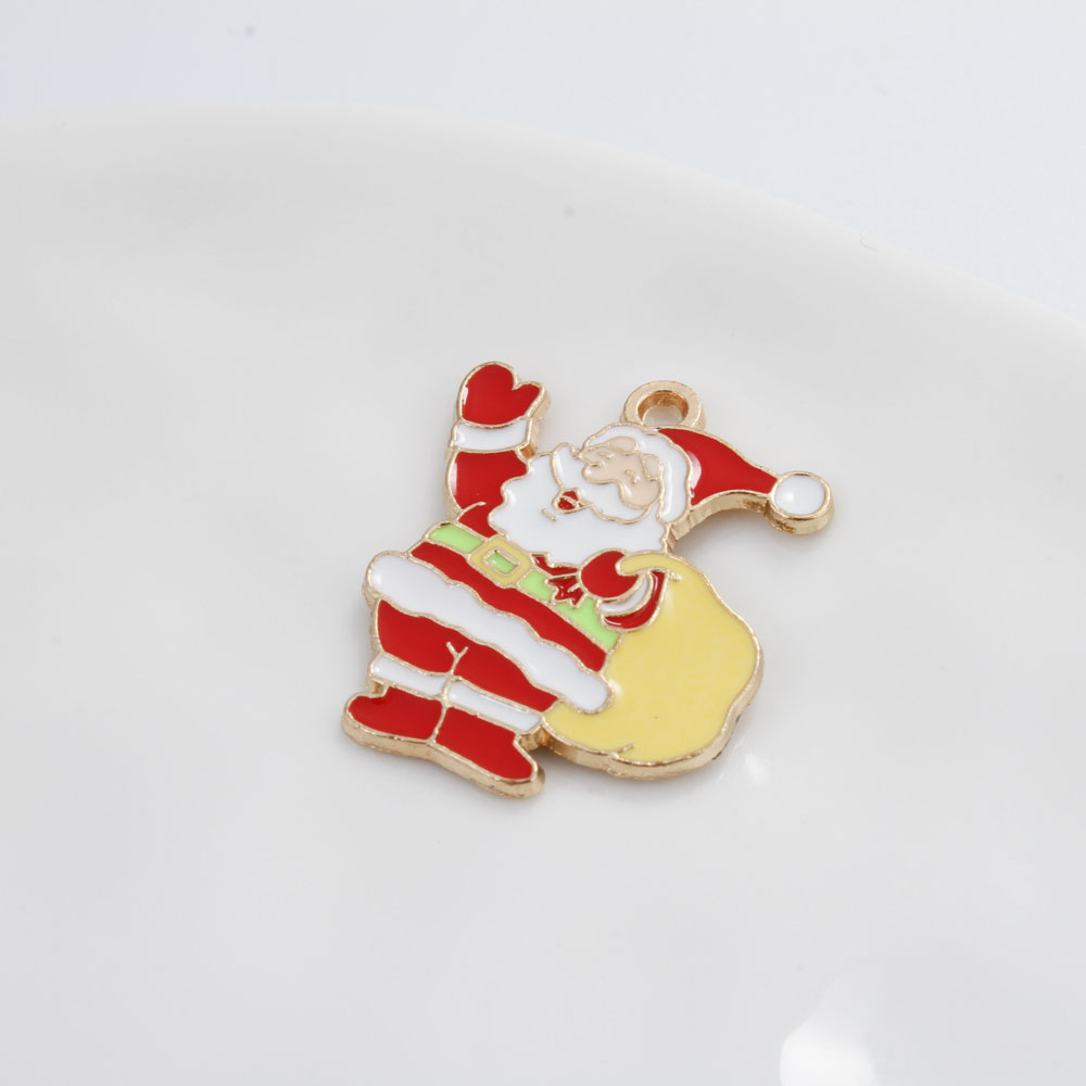 Pendentifs Noël en alliage de zinc, le père noël, Placage de couleur d'or, DIY & émail, couleurs mélangées, 26x21x1.50mm, Vendu par PC