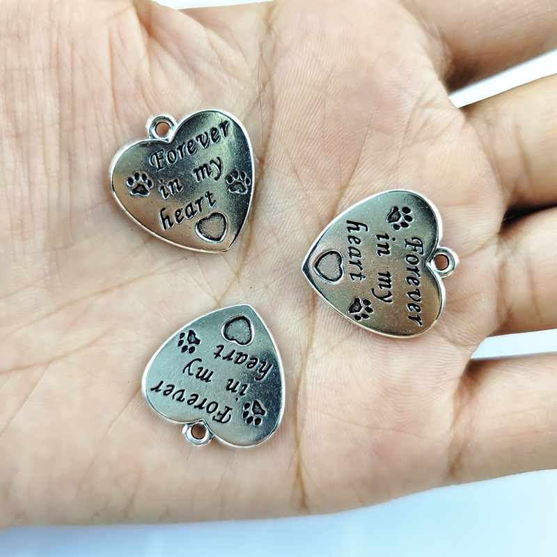 Pendentifs coeur en alliage de zinc, Plaqué de couleur d'argent, DIY