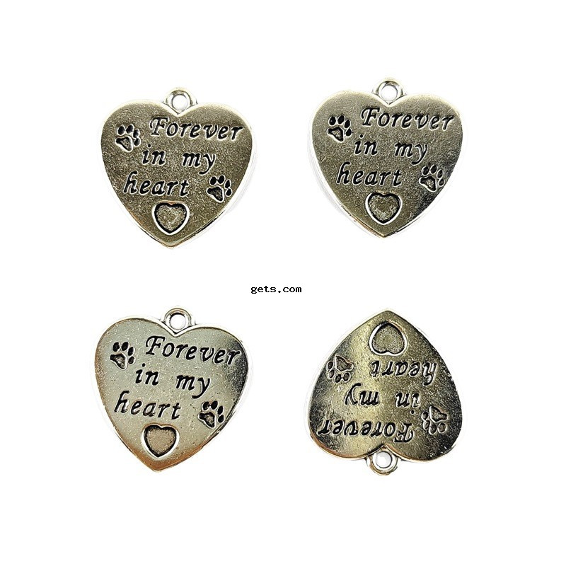 Pendentifs coeur en alliage de zinc, Plaqué de couleur d'argent, DIY, 22x20mm, 100PC/sac, Vendu par sac