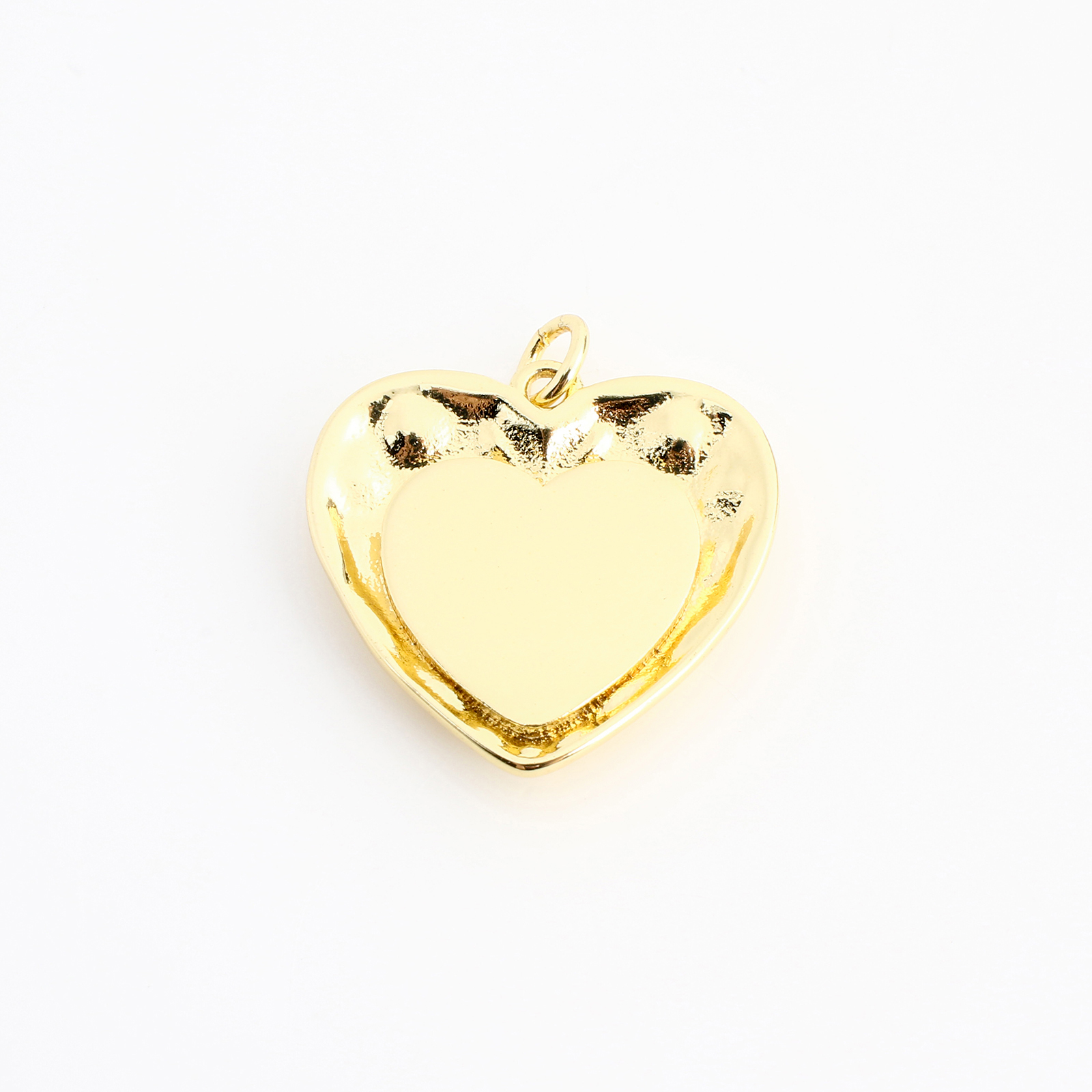 Pendentifs coeur en laiton, avec perle de plastique, DIY, doré, 20x20x3mm, Vendu par PC