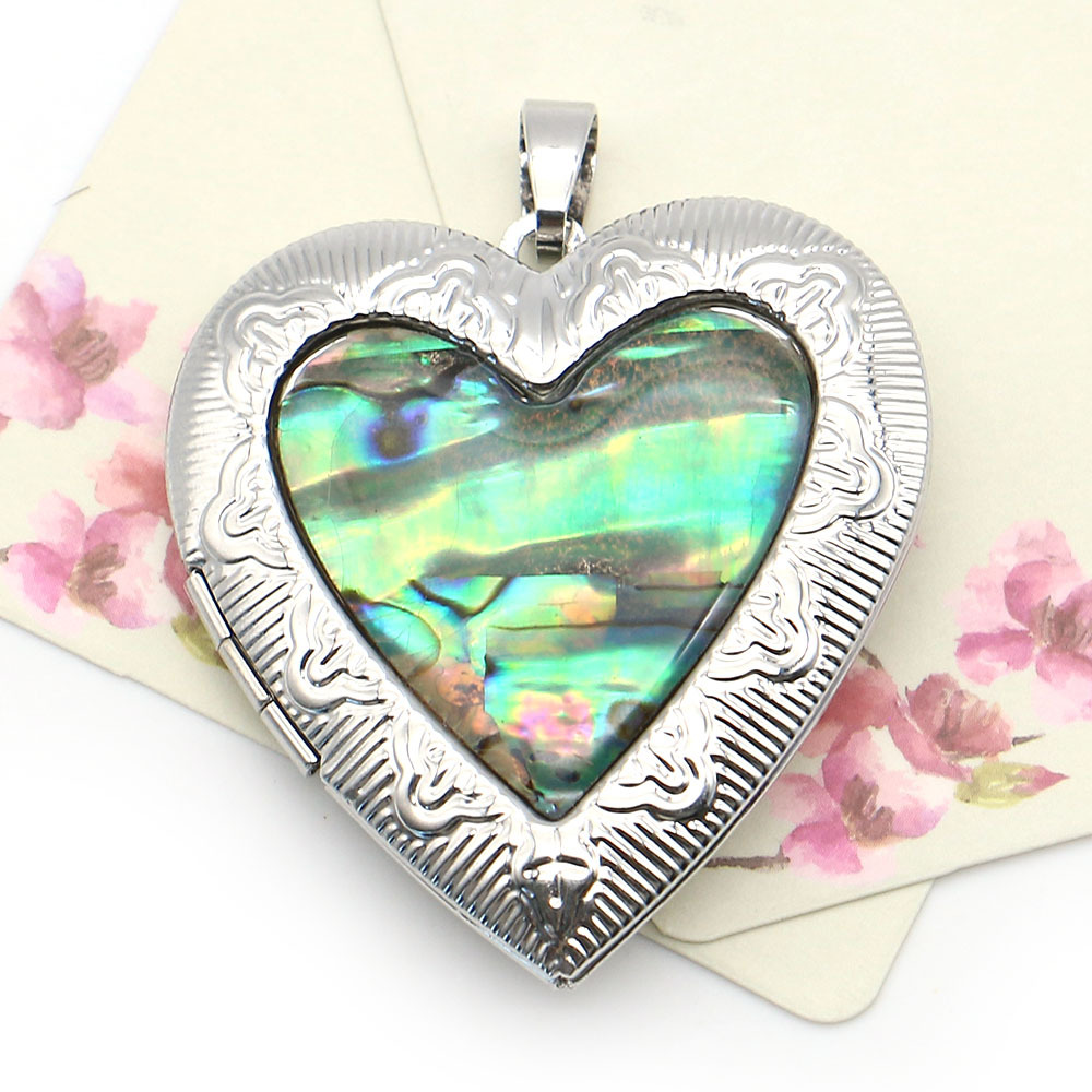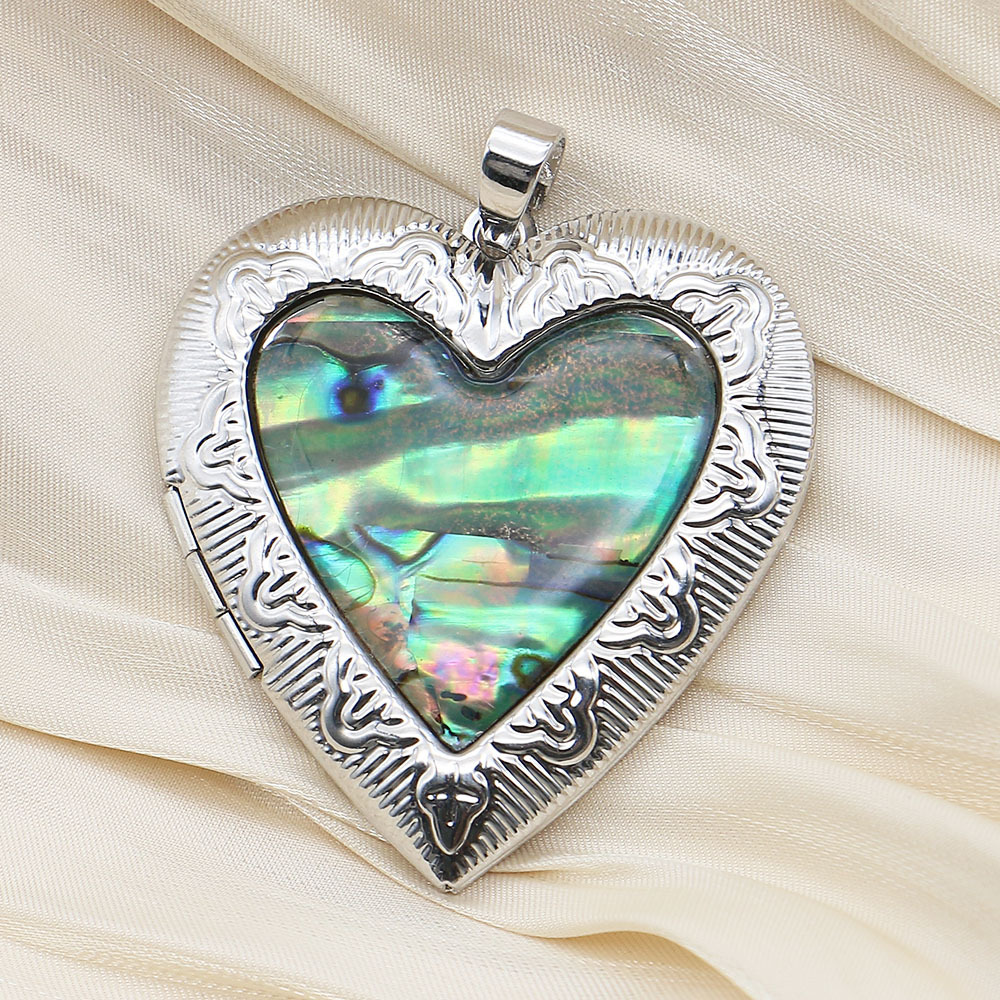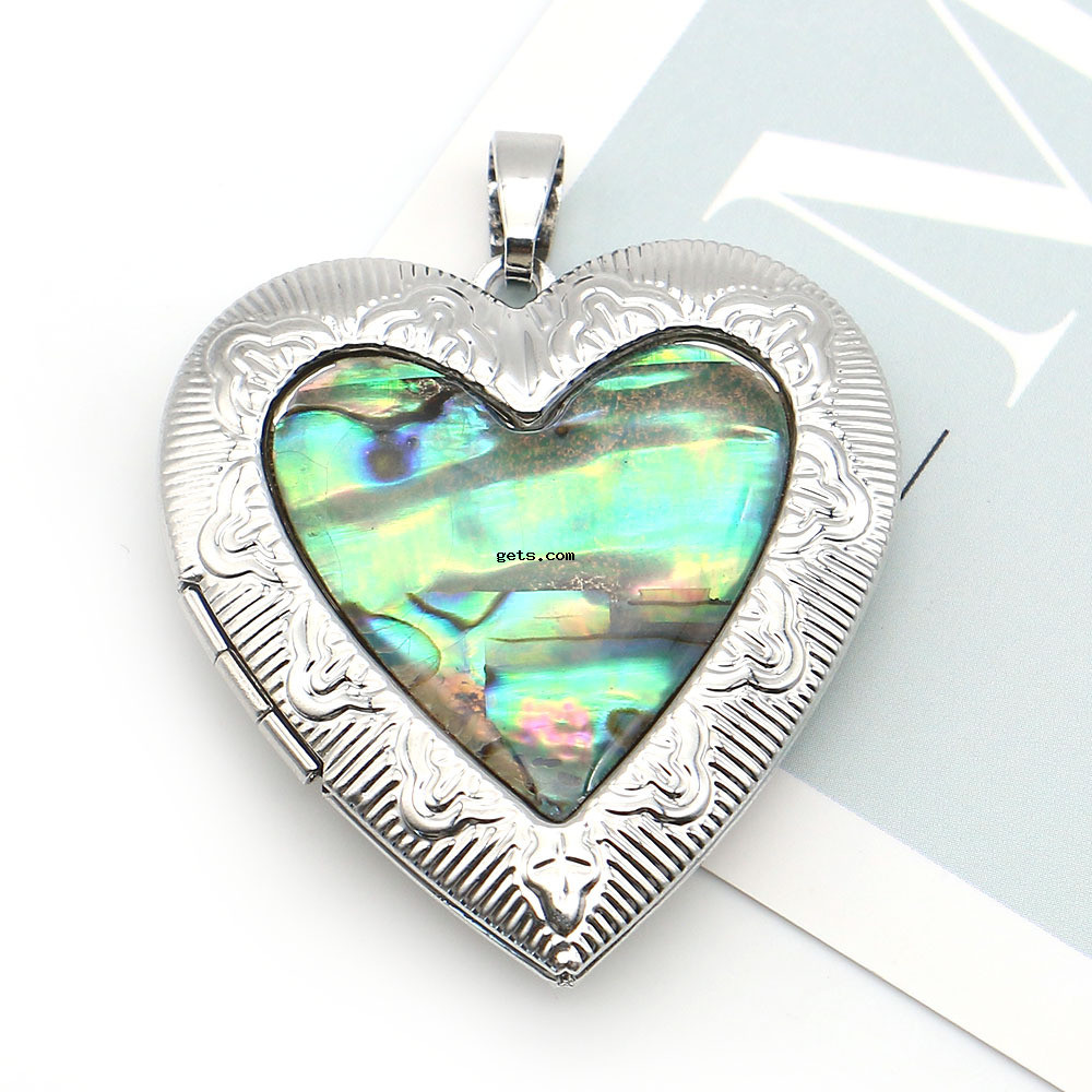 Pendentifs de médaillon en alliage de zinc, coquille d'ormeau, avec laiton, coeur, Placage, DIY, couleurs mélangées, 40x42mm, Vendu par PC