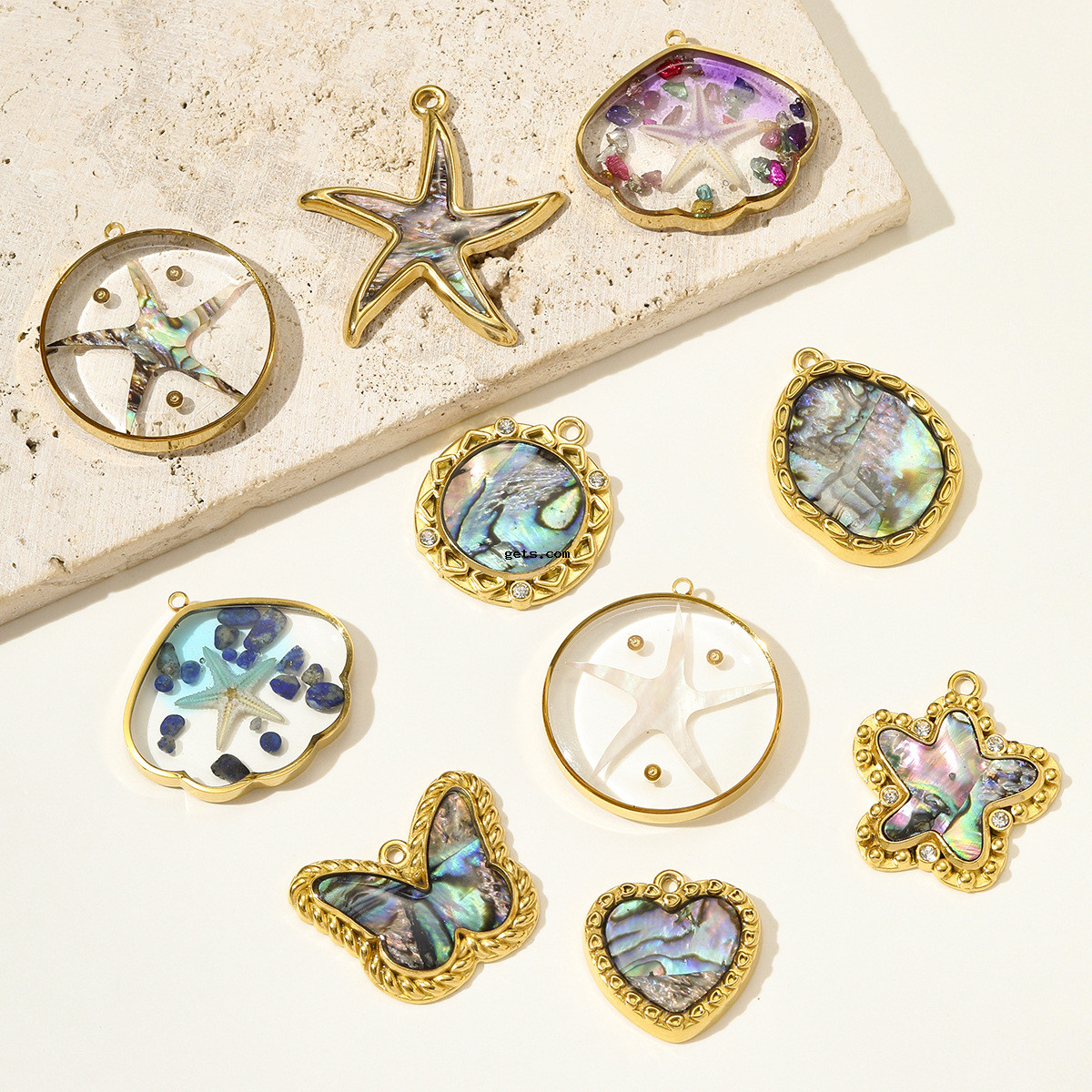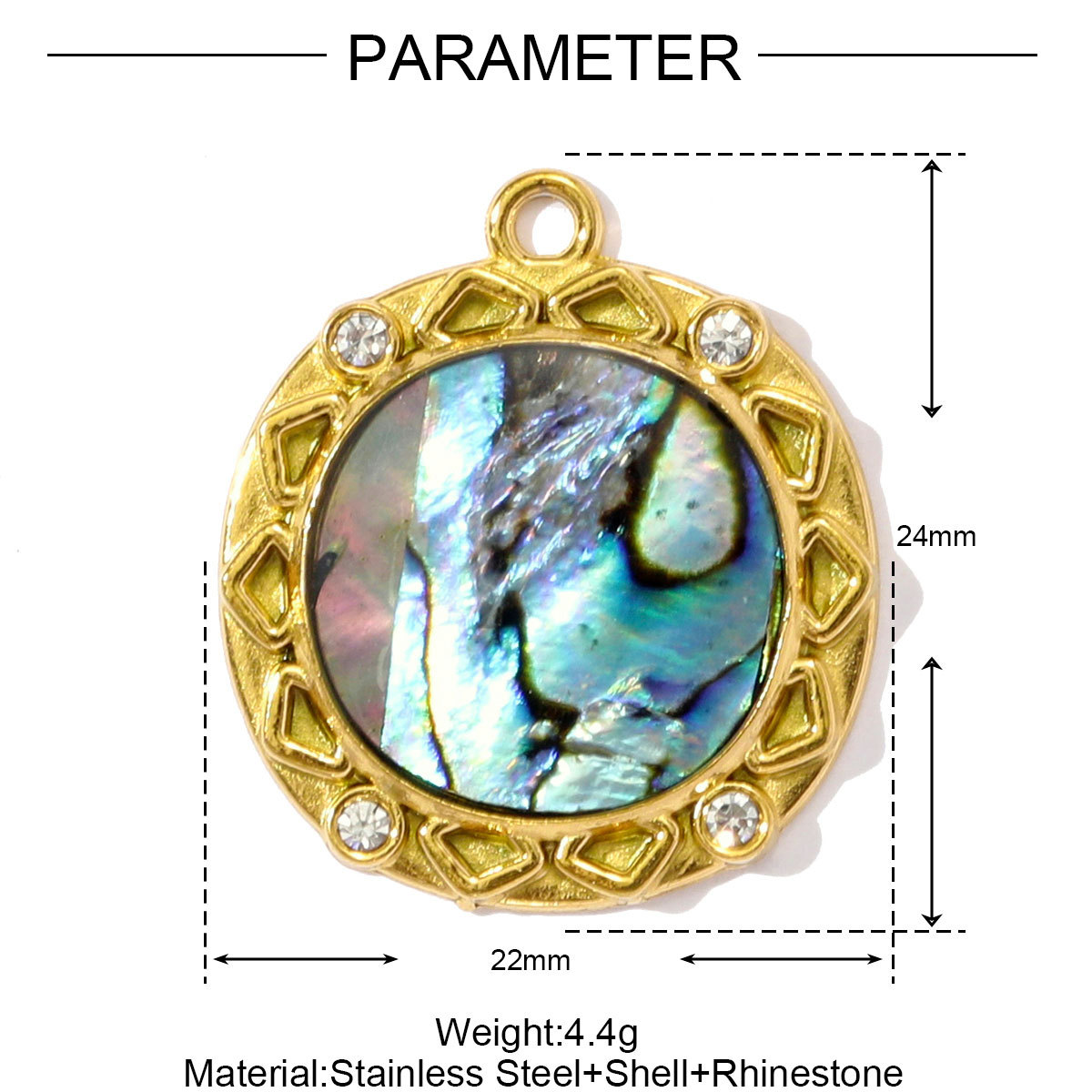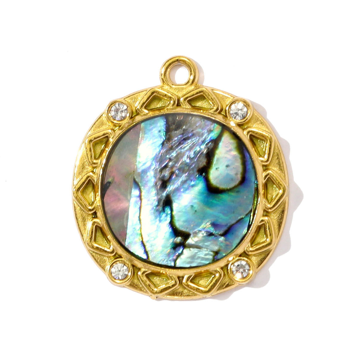 Pendentifs d'ormeau coquillage naturel, Acier inoxydable 304, avec coquille d'ormeau, Placage de couleur d'or, DIY & émail & avec strass, plus de couleurs à choisir, 3PC/sac, Vendu par sac