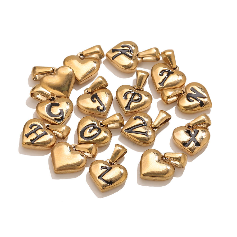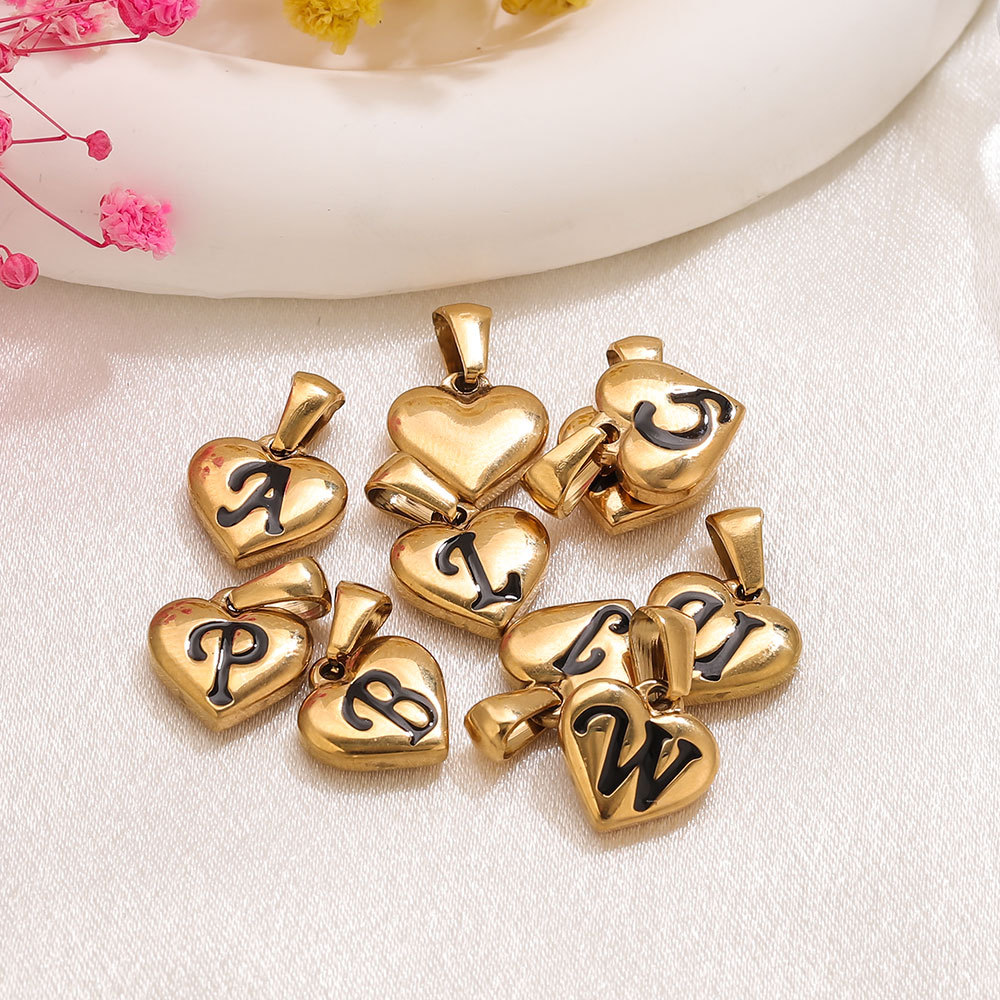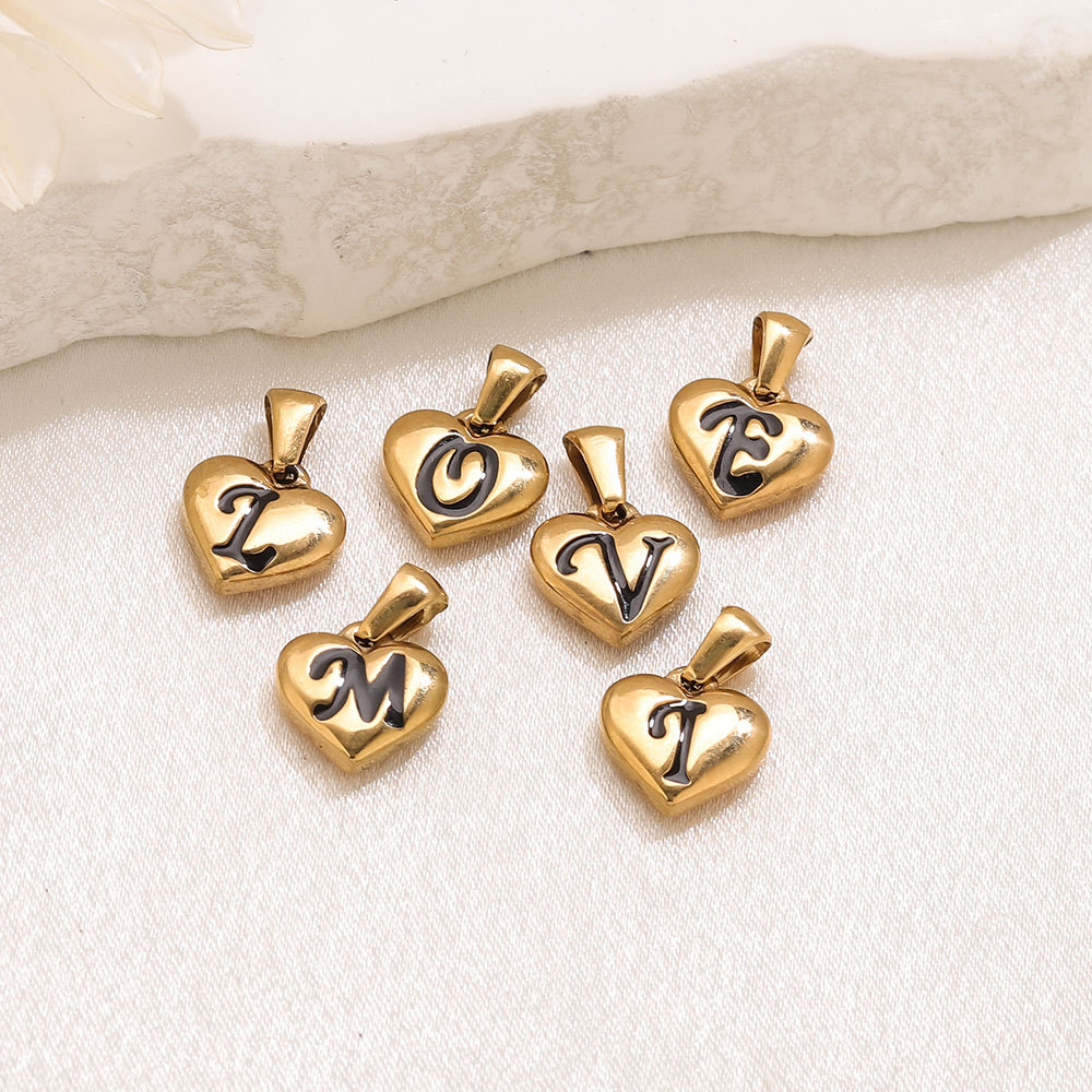 Pendentifs en acier inoxydable Lettre, Acier inoxydable 304, coeur, Placage, DIY & avec le motif de lettre & émail, plus de couleurs à choisir, 12x12.50mm, Vendu par PC