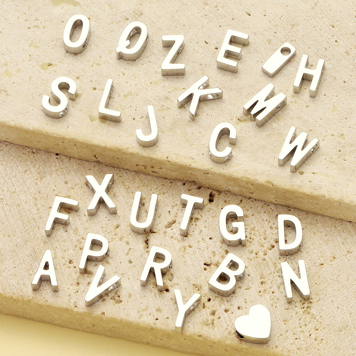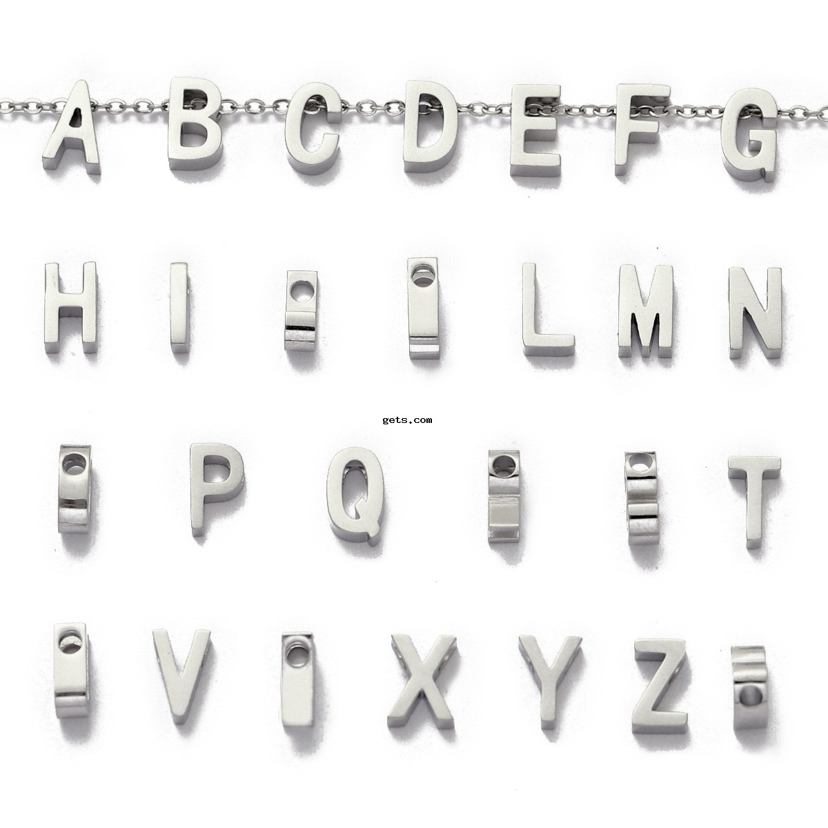 Pendentifs en acier inoxydable Lettre, Acier inoxydable 304, Lettre d’alphabet, DIY & styles différents pour le choix, couleur originale, 5x8mm, 5PC/sac, Vendu par sac