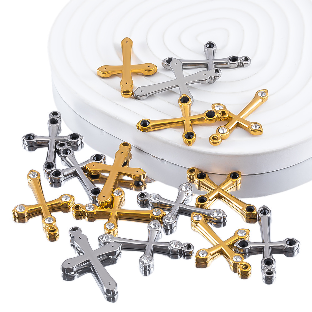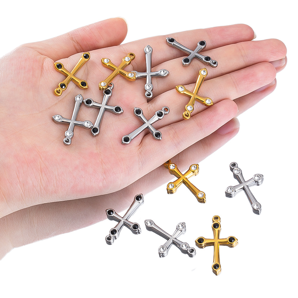 - Pendentifs en acier inoxydable de la Croix-, Acier inoxydable 304, Placage de couleur d'or