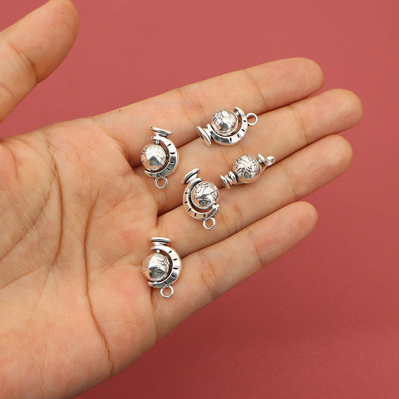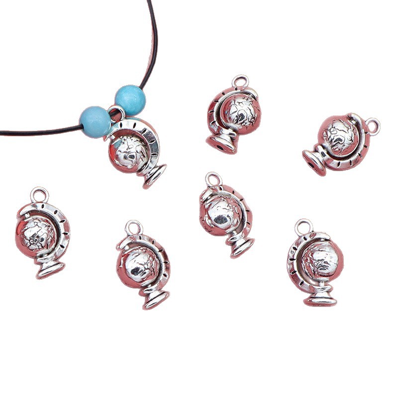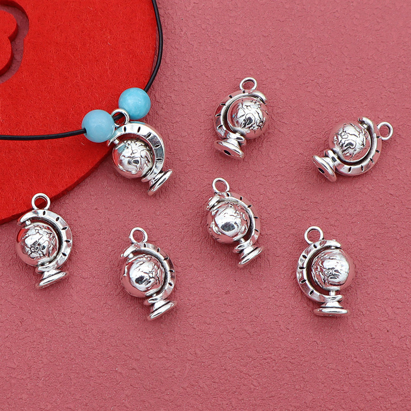 Pendentifs en alliage de zinc, Globe, Placage de couleur argentée, DIY, 19x12mm, 100PC/sac, Vendu par sac