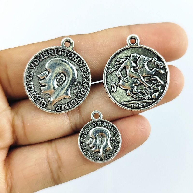 Pendentifs en forme de personnage en alliage de Zinc, Rond, Placage de couleur argentée, DIY, argent, 100PC/sac, Vendu par sac