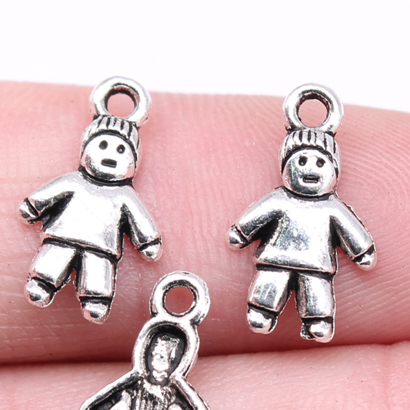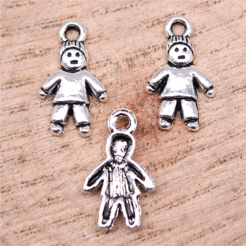 Pendentifs en forme de personnage en alliage de Zinc, Plaqué de couleur d'argent, DIY, 16x9mm, 40PC/sac, Vendu par sac