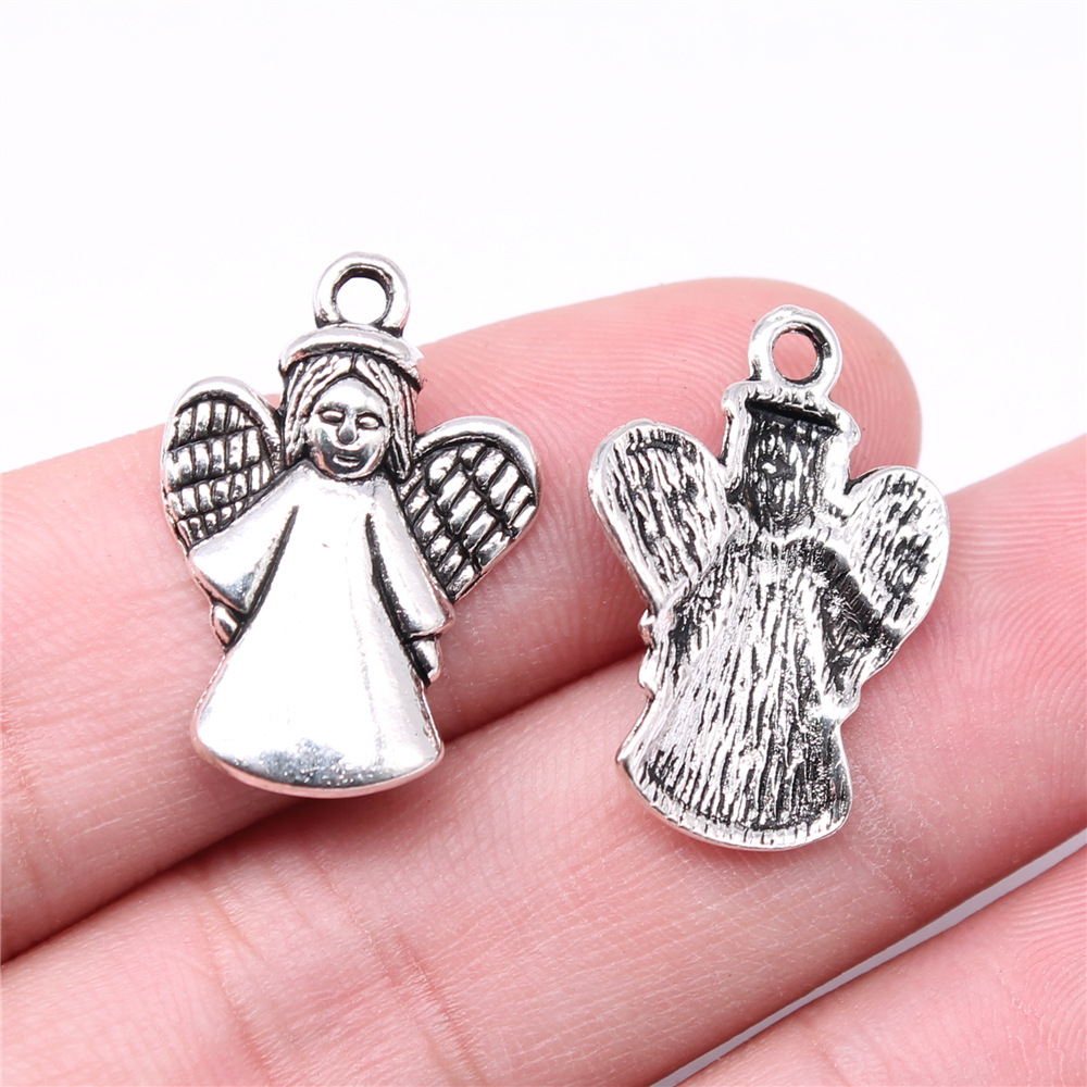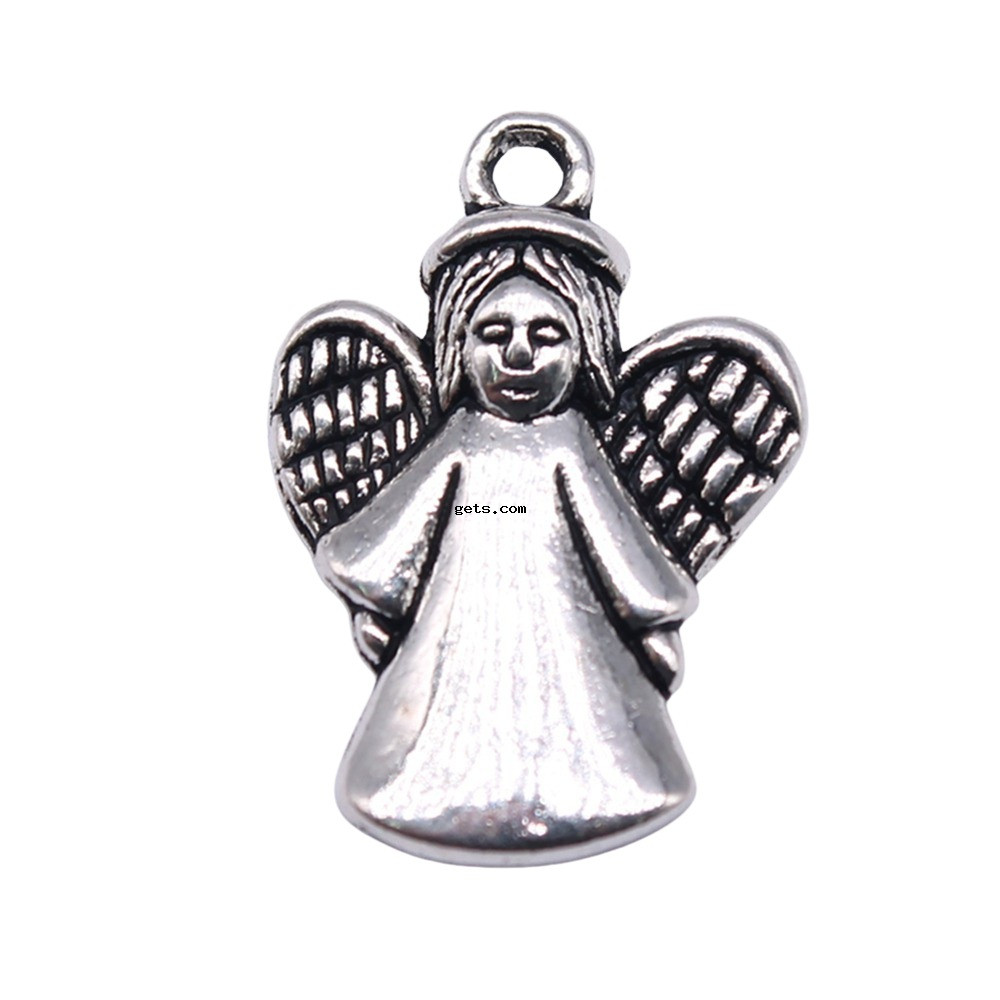 Pendentifs en forme de personnage en alliage de Zinc, ange, Plaqué de couleur d'argent, DIY, 24x17mm, 20PC/sac, Vendu par sac