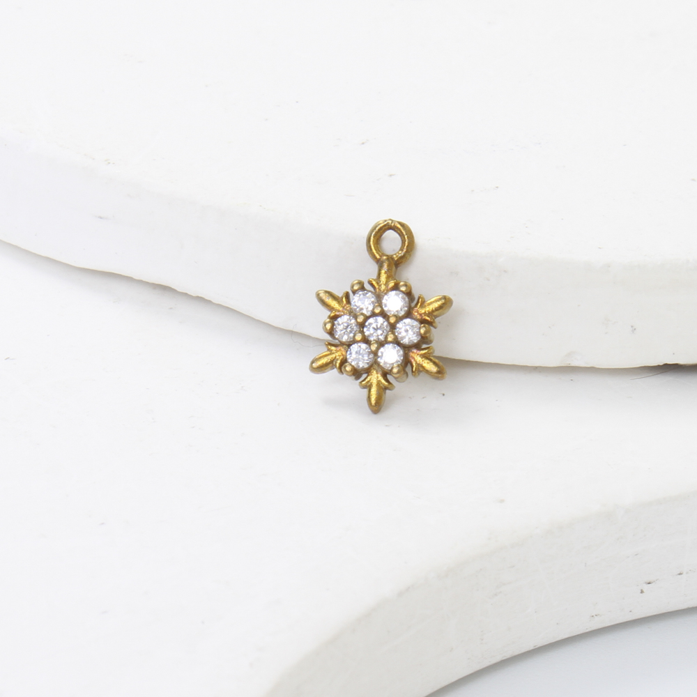 Pendentifs strass en laiton, fleur, Placage, DIY & avec strass, doré, protéger l'environnement, sans nickel, plomb et cadmium, 10.70x7.50x2.10mm, Vendu par PC