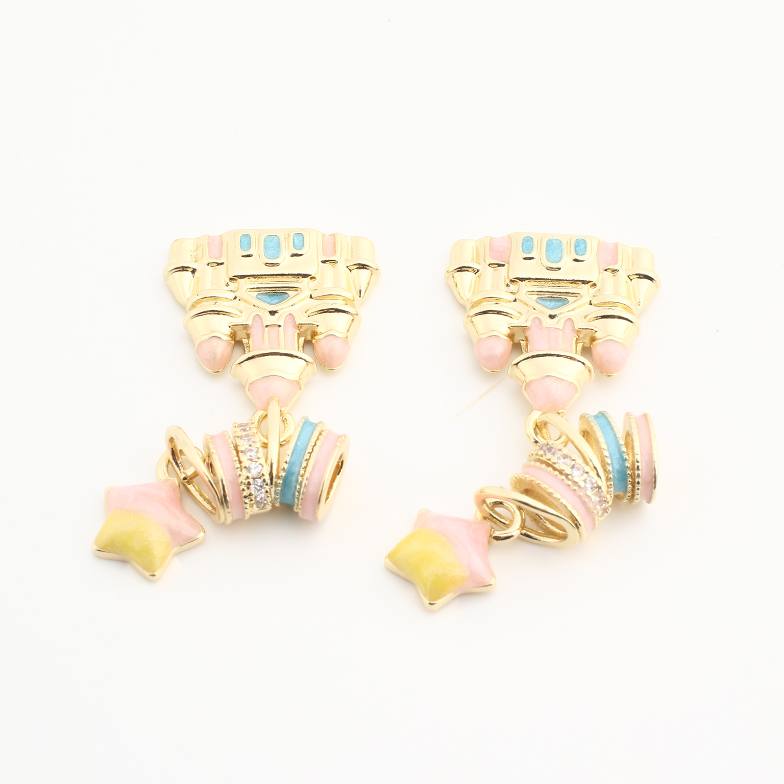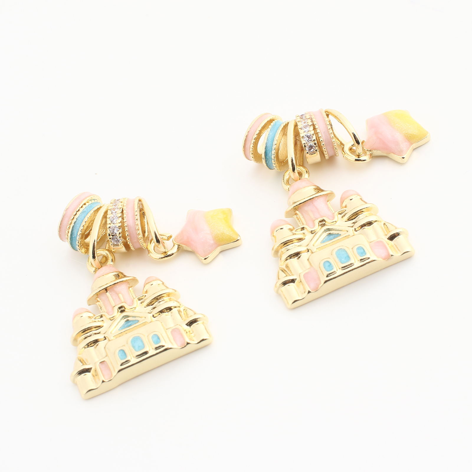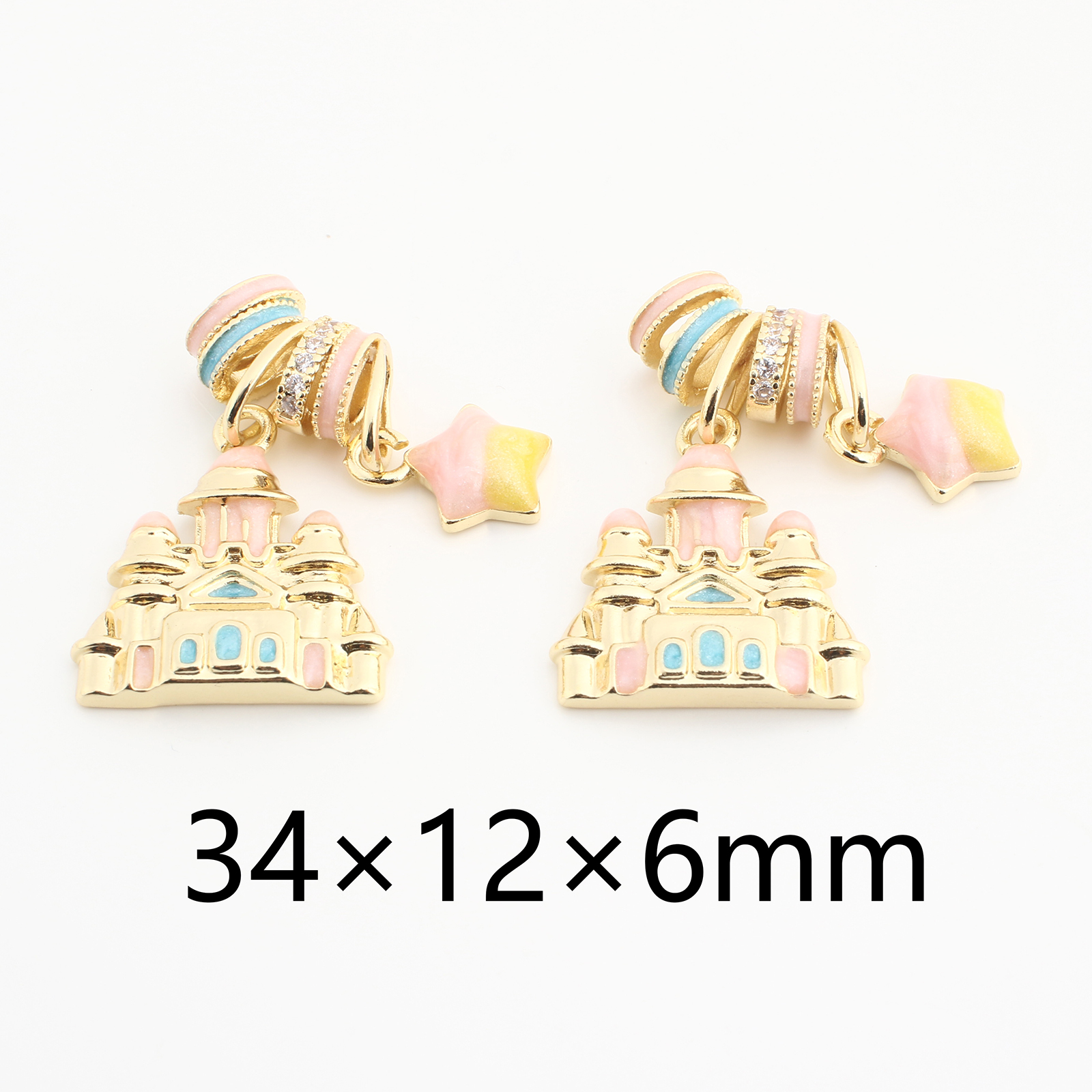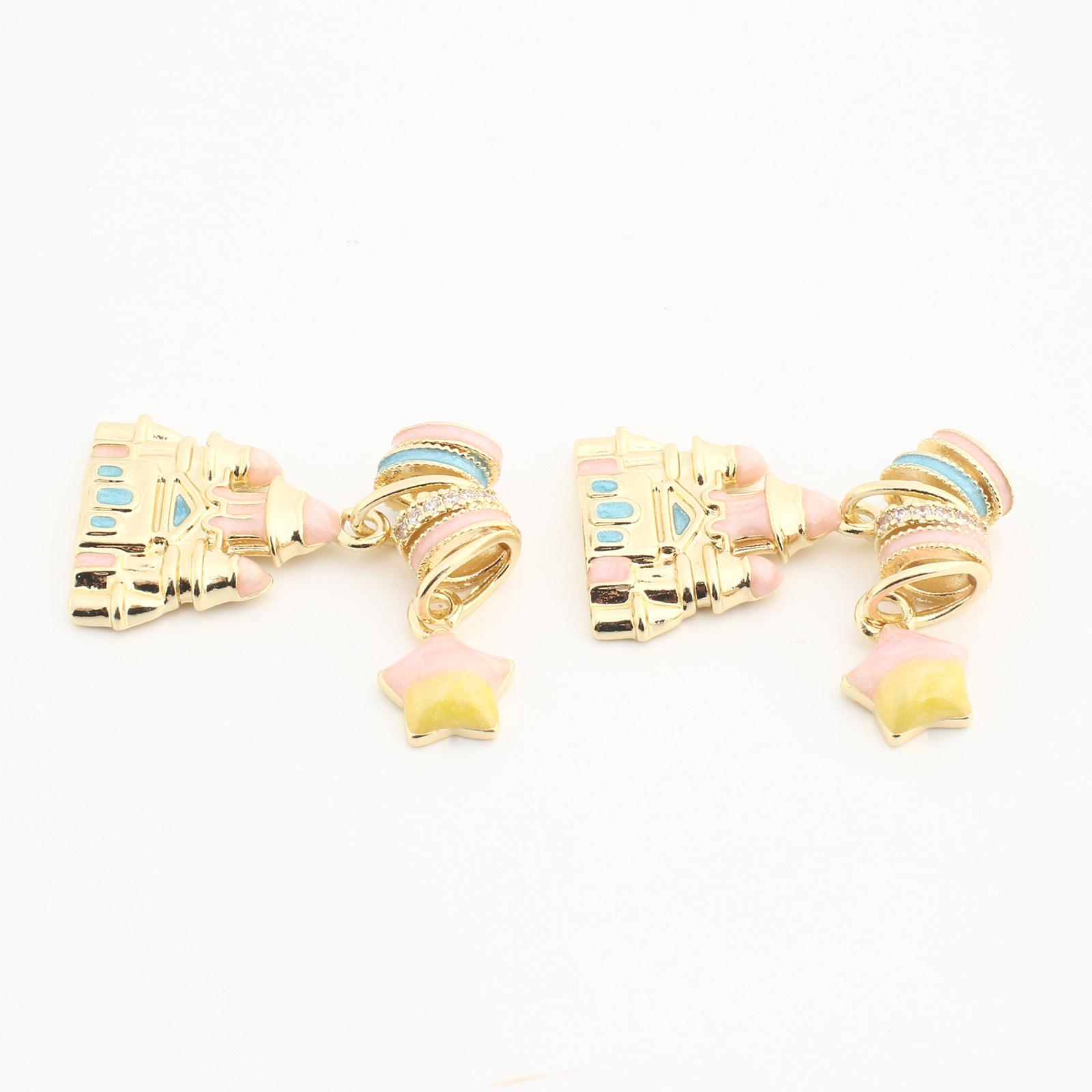 Pendentifs strass en laiton, Château, Placage, DIY & émail & avec strass, couleurs mélangées, protéger l'environnement, sans nickel, plomb et cadmium, 20PC/sac, Vendu par sac