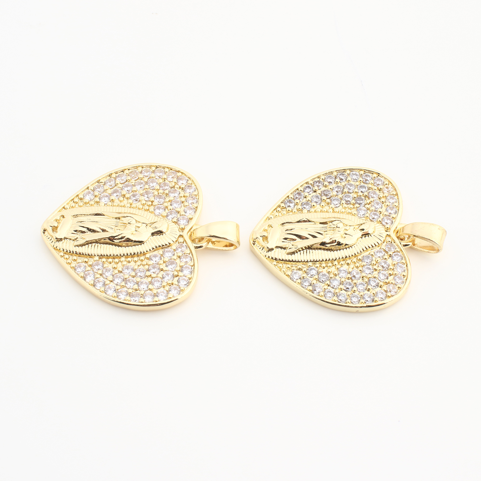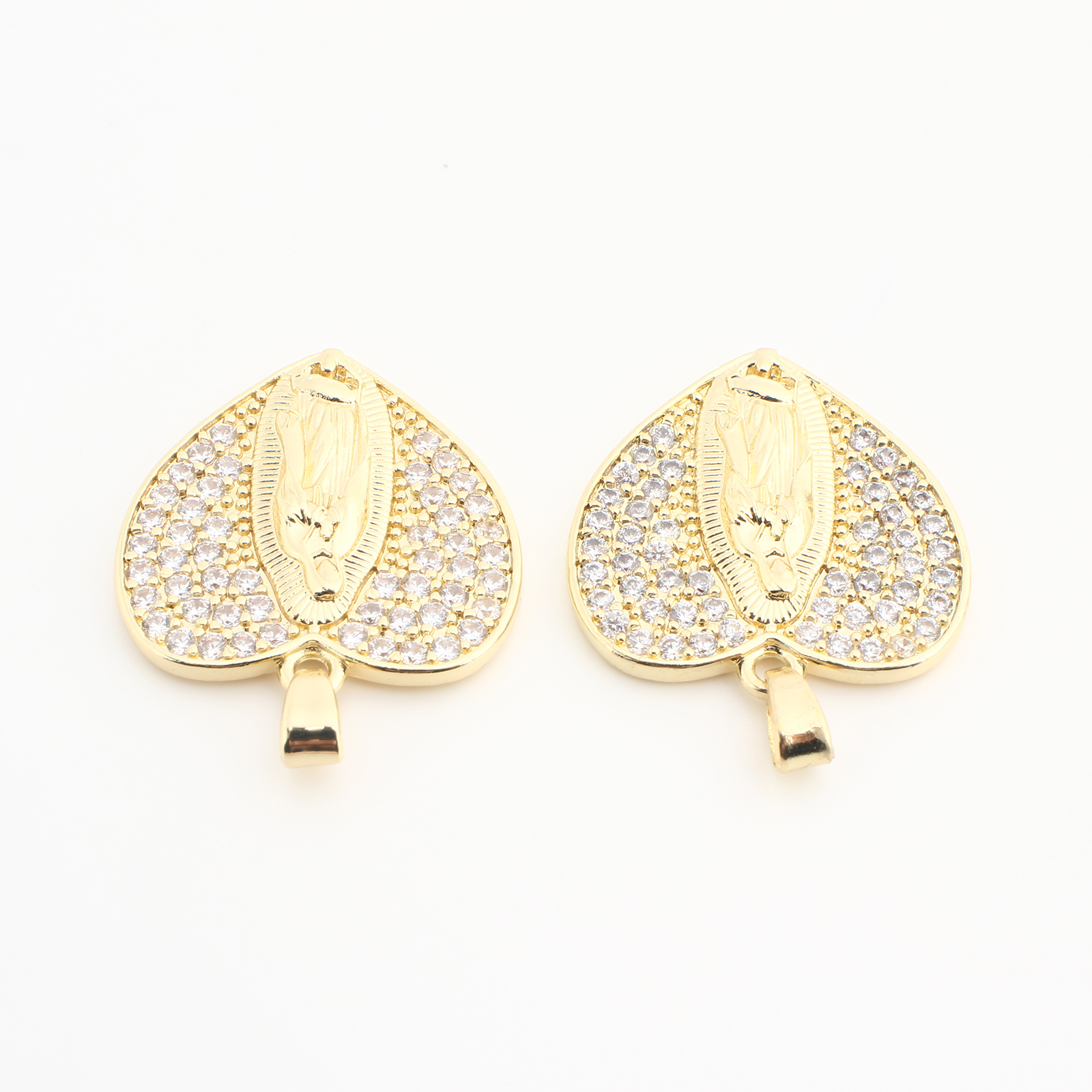 Pendentifs strass en laiton, coeur, Placage, DIY & avec strass, doré, protéger l'environnement, sans nickel, plomb et cadmium, 20PC/sac, Vendu par sac