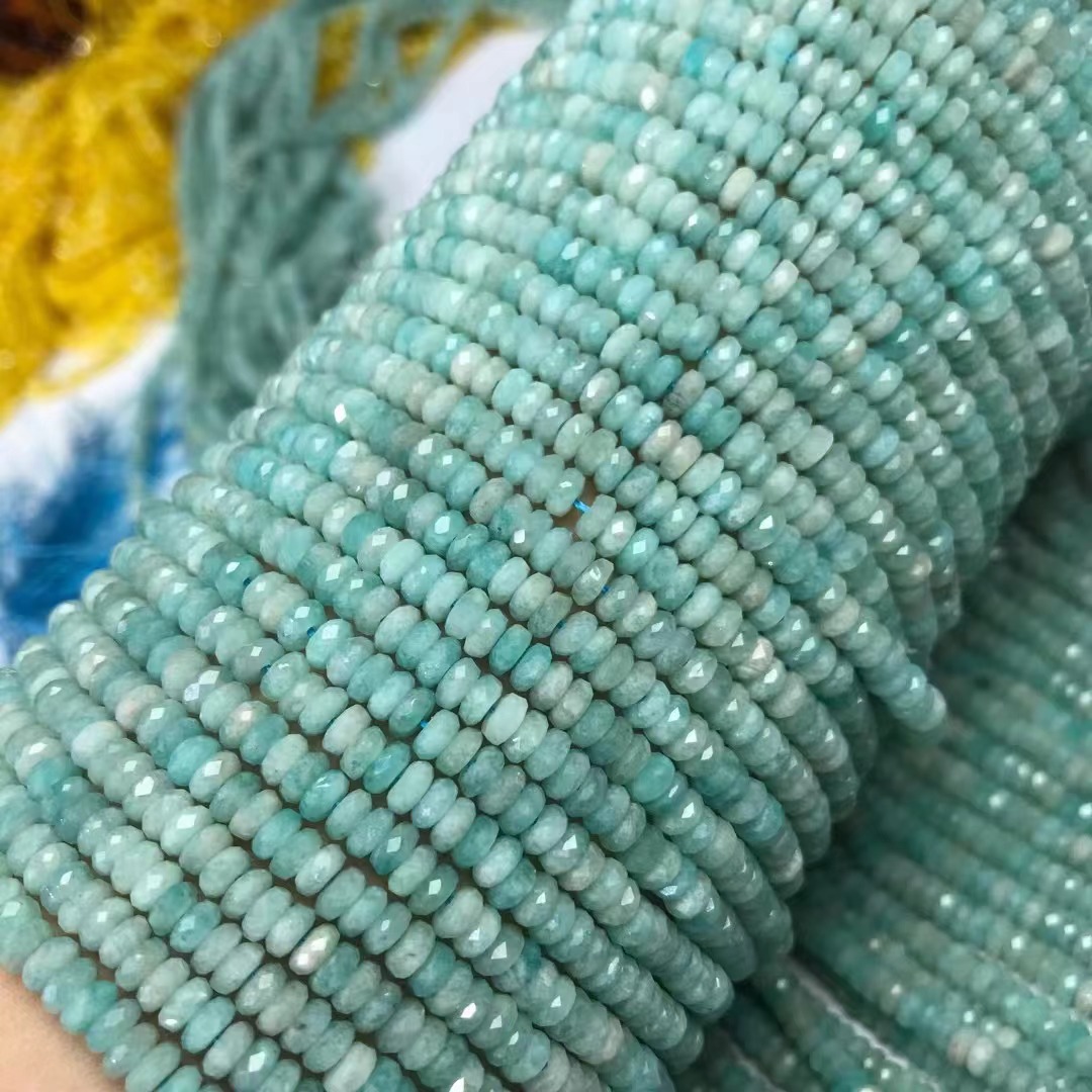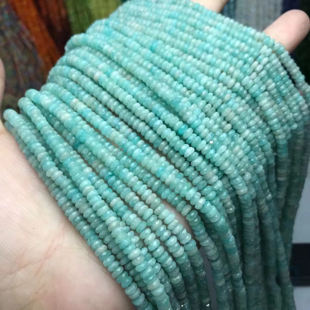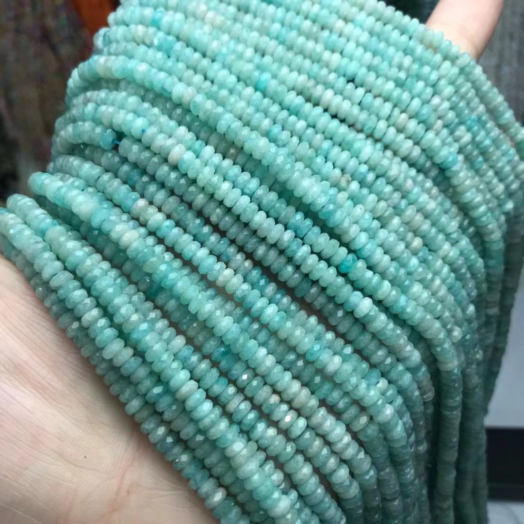 - Perles amazonite, Plat rond, poli