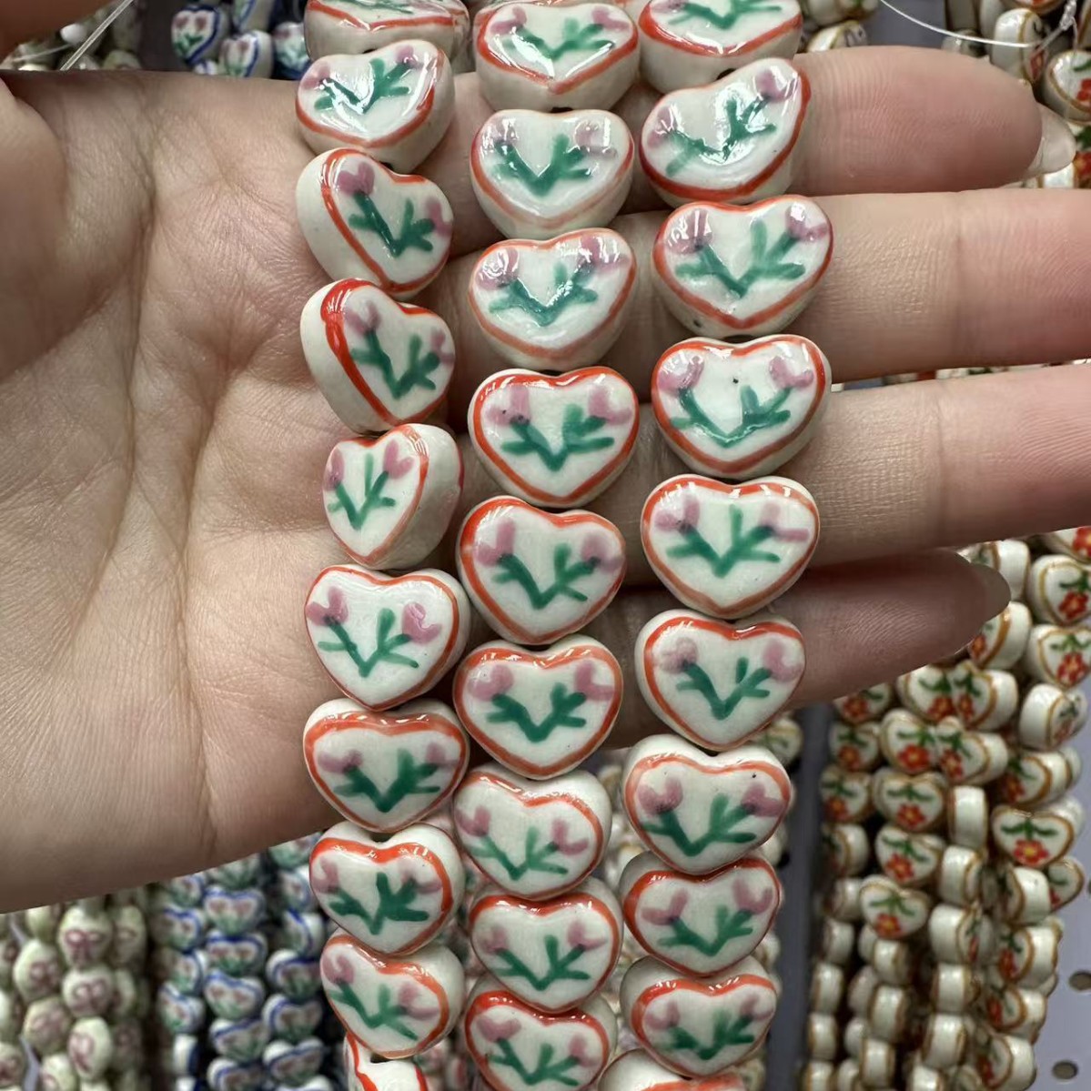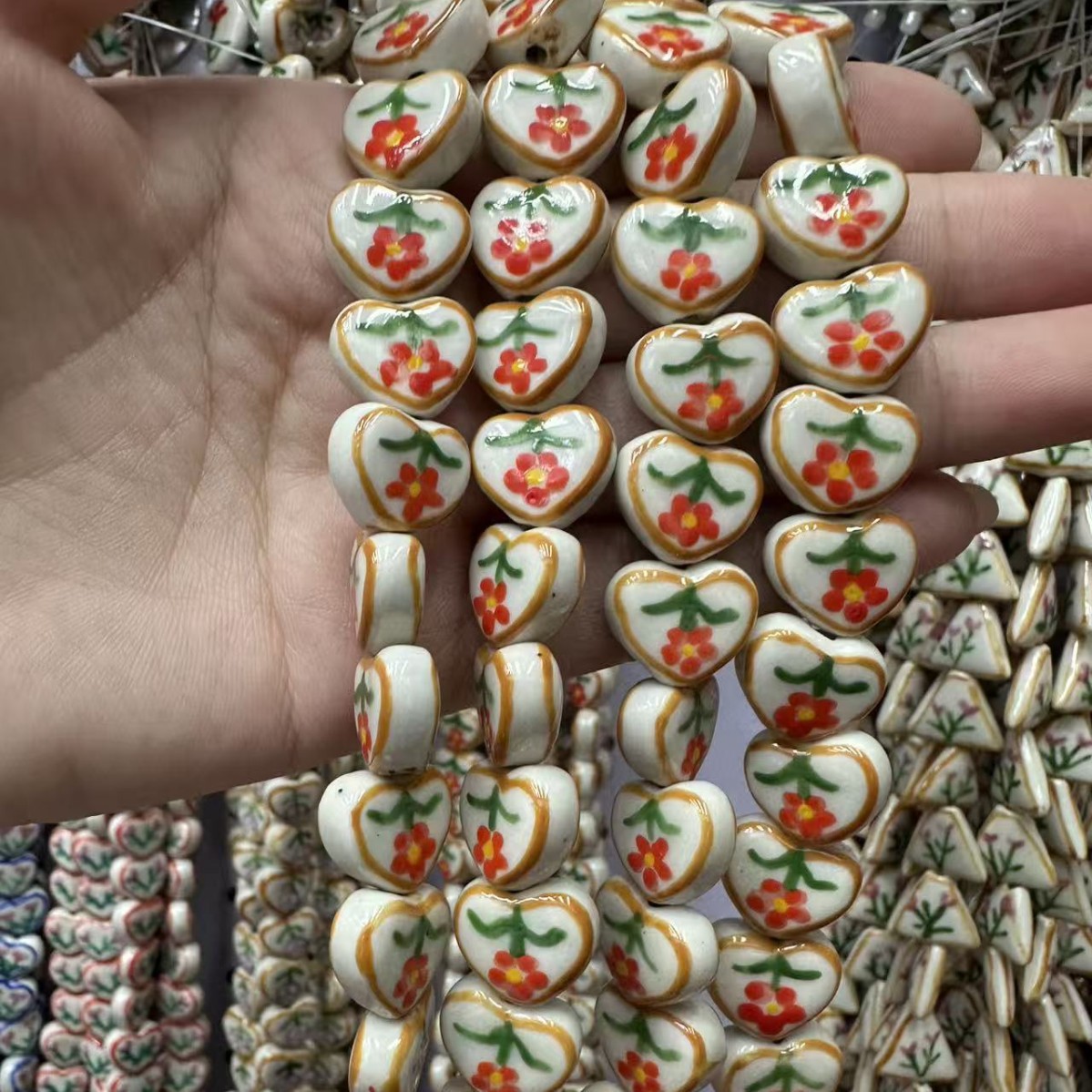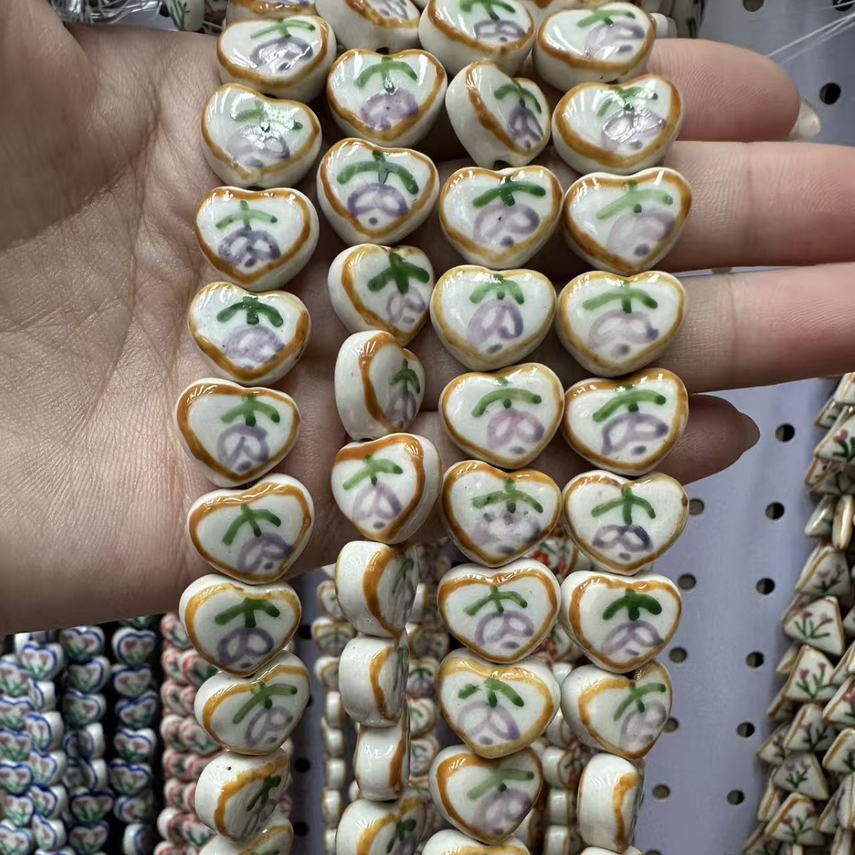- Perles bijoux en porcelaine, ovale, dessiné à la main