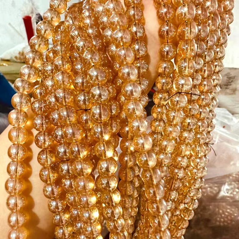 Perles en verre de mode, Rond, vernis au four, DIY, Ambre, 10mm, Environ 80PC/brin, Vendu par brin