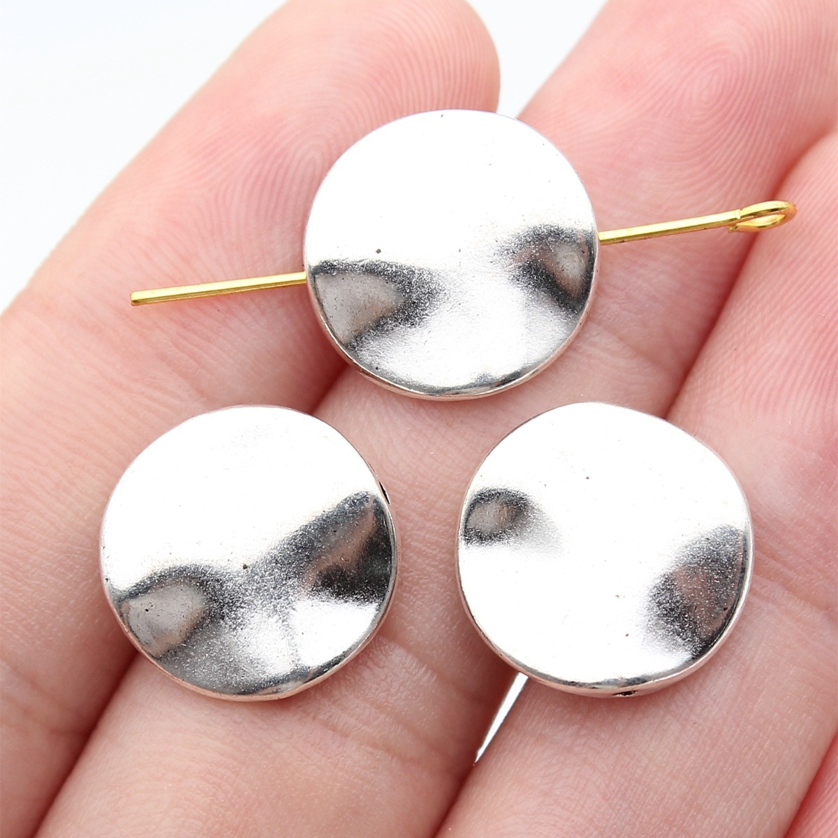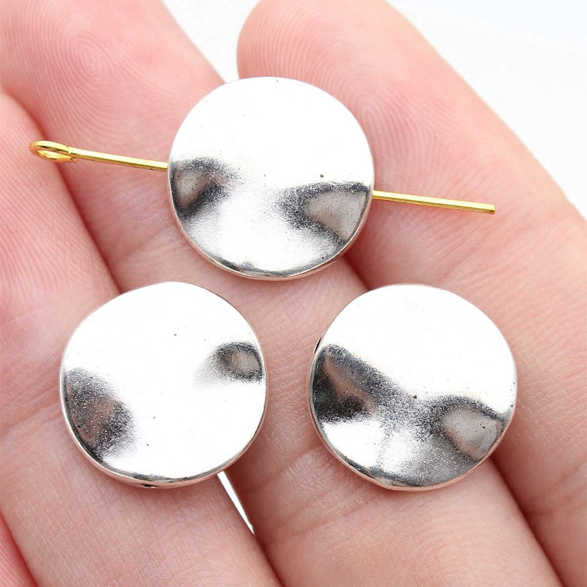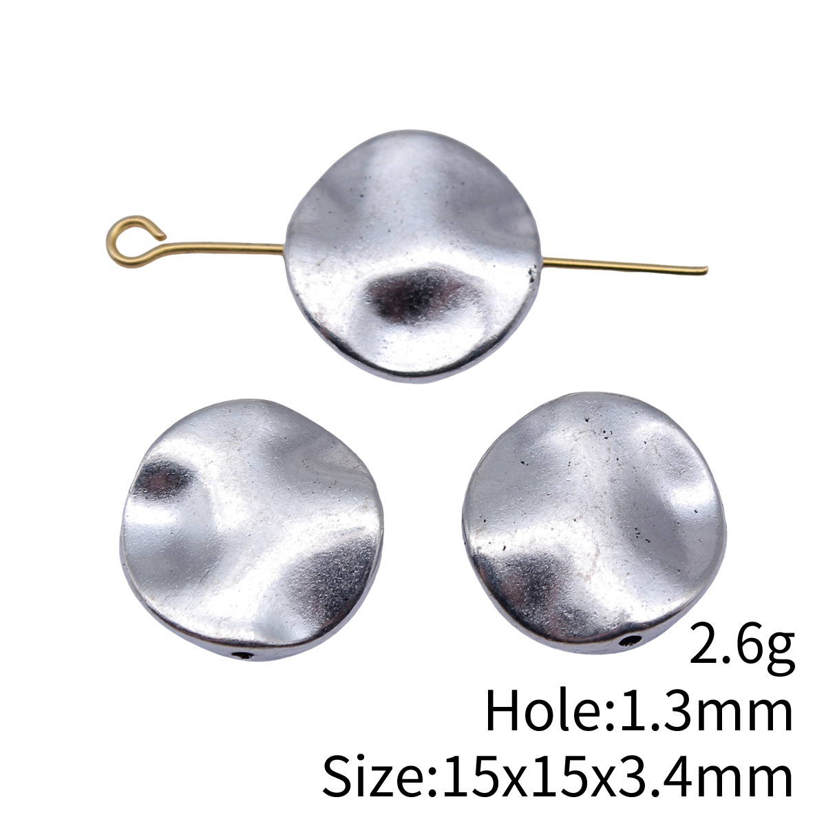 Perles plates en alliage de zinc , Rond, Placage, DIY, 15x15x3.40mm, 10PC/sac, Vendu par sac