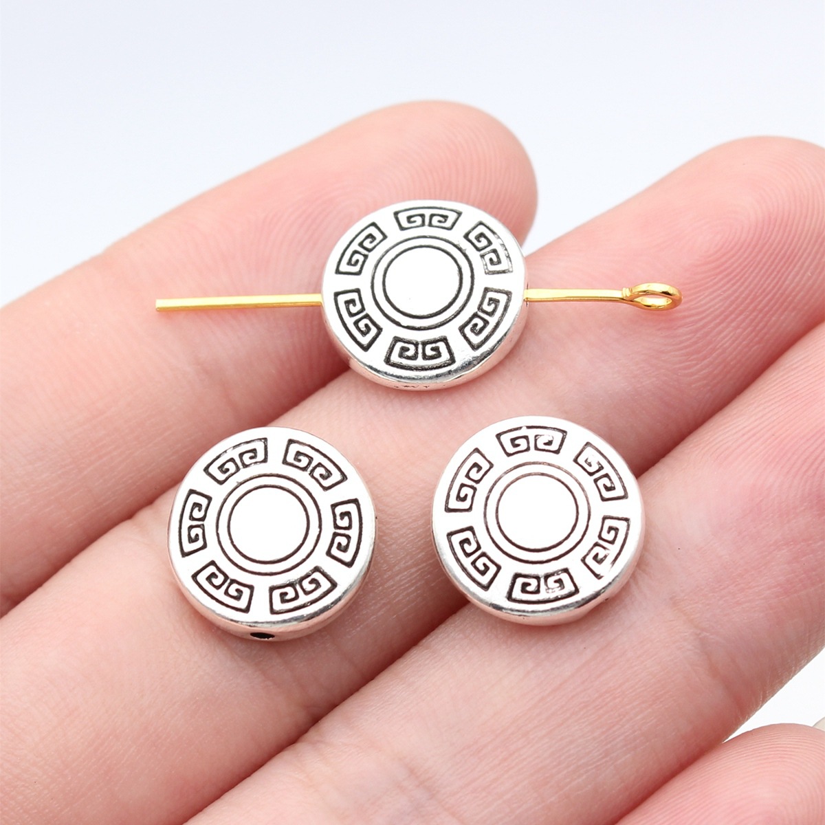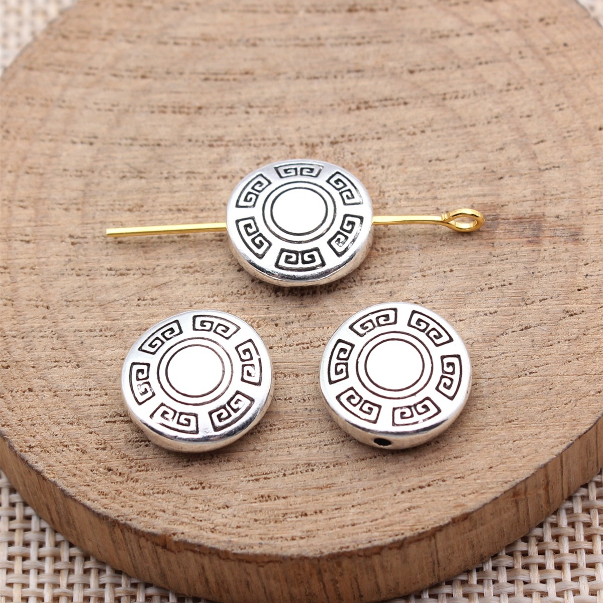 Perles plates en alliage de zinc , Rond, Placage, DIY, couleur bronze antique, 13x13x4mm, Vendu par PC