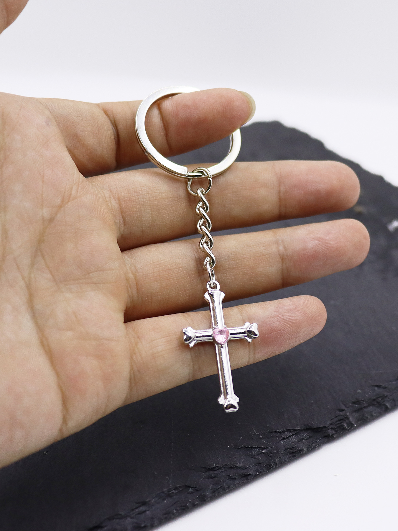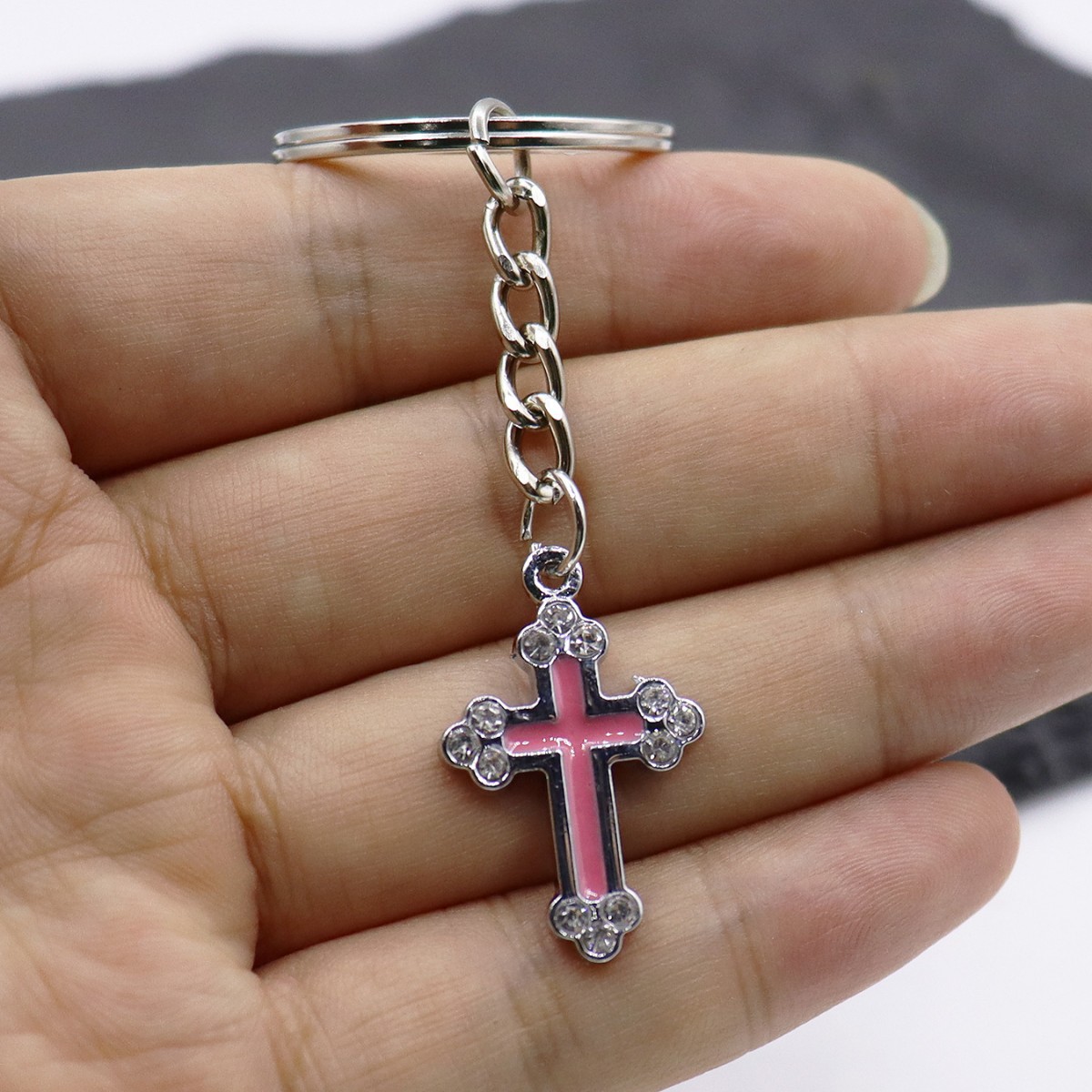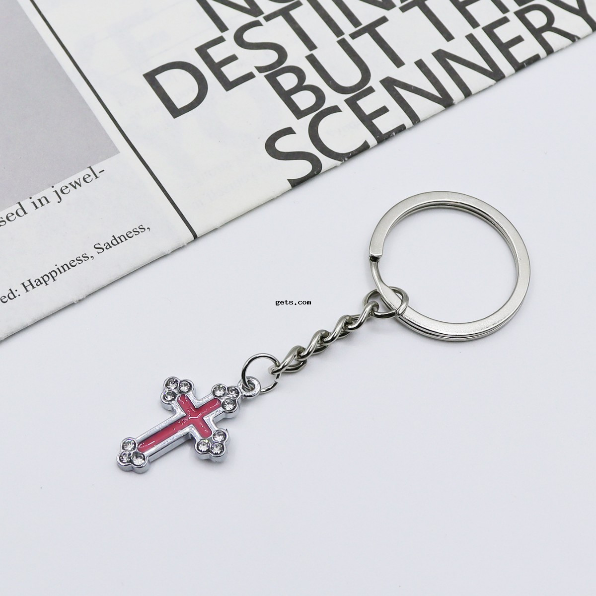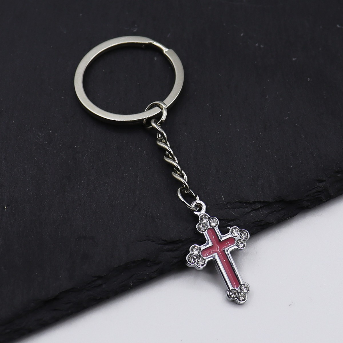 Porte-clés, alliage de zinc, croix, Placage de couleur d'or, bijoux de mode & émail & avec strass, plus de couleurs à choisir, Vendu par PC