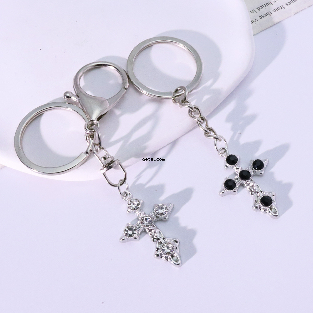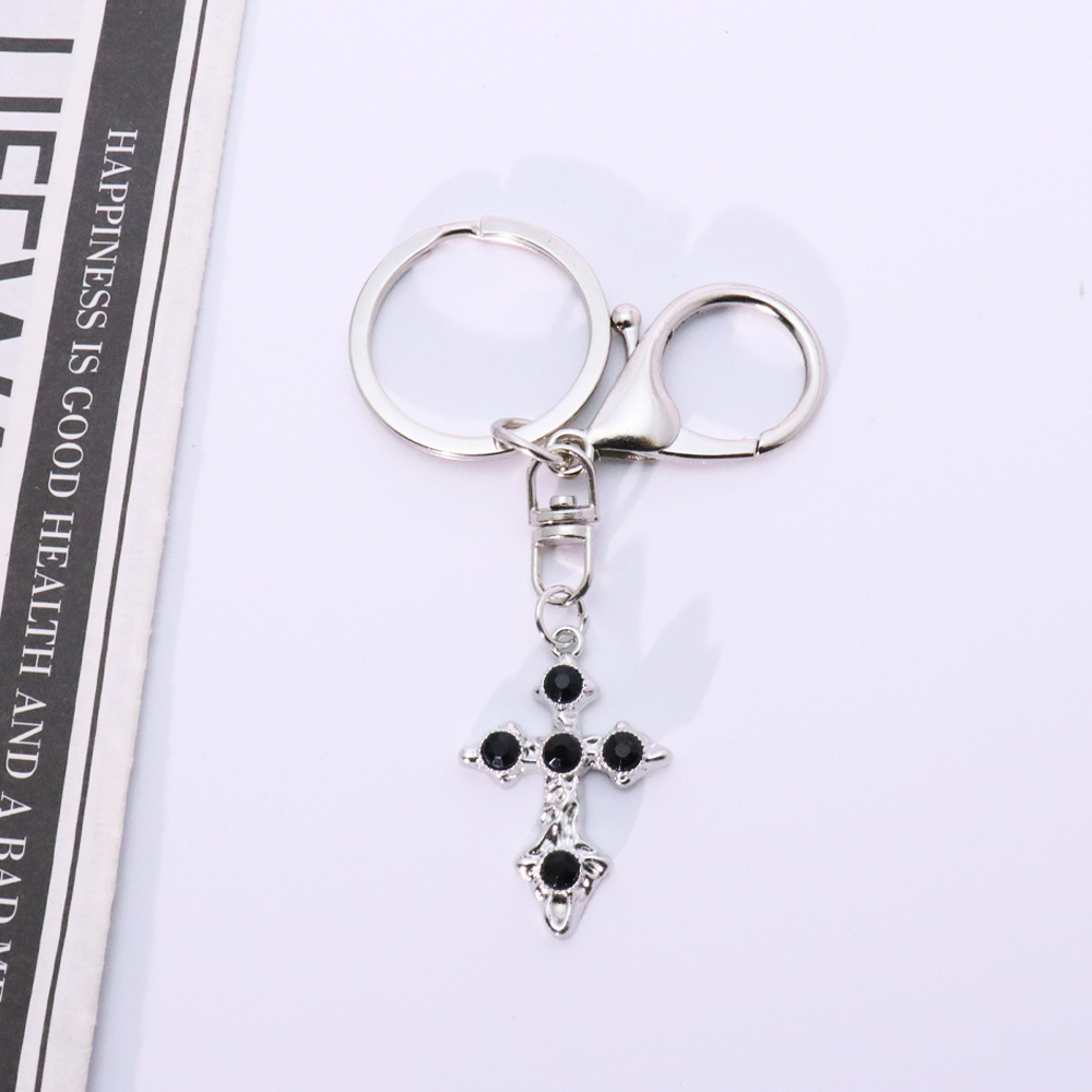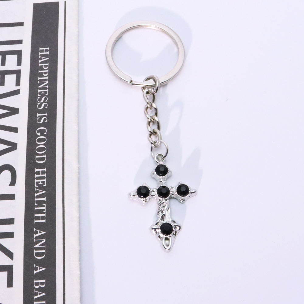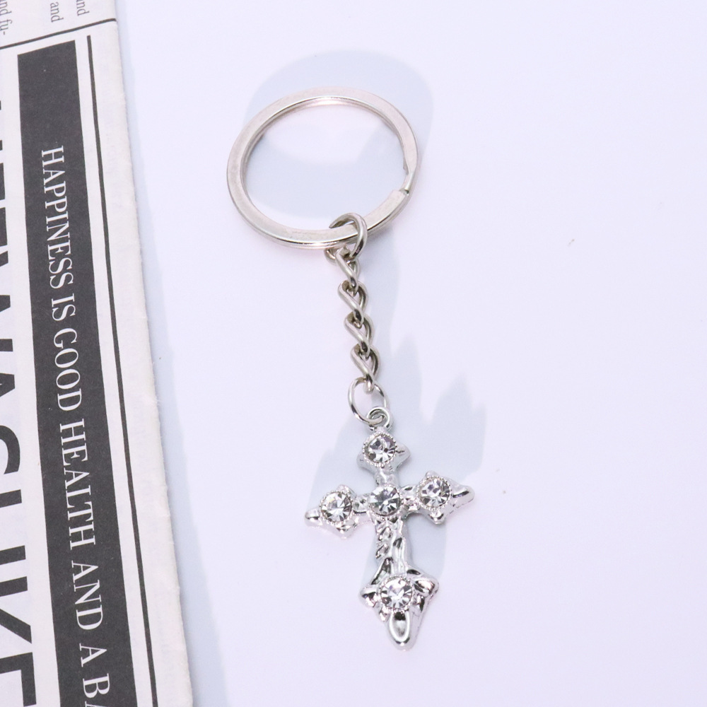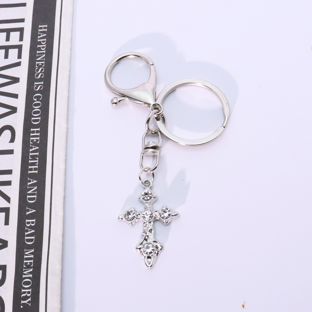 Porte-clés, alliage de zinc, croix, Placage de couleur d'or, bijoux de mode & avec strass, plus de couleurs à choisir, Vendu par PC