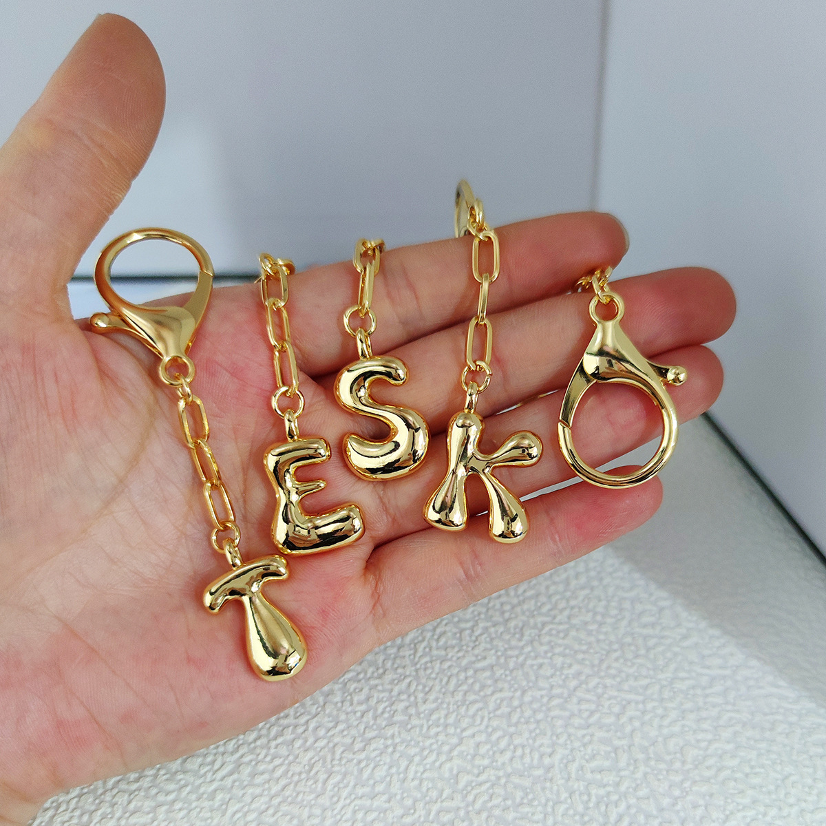 Porte-clés, laiton, Lettre d’alphabet, Plaqué or 18K, unisexe & styles différents pour le choix, 230x920mm, Vendu par PC