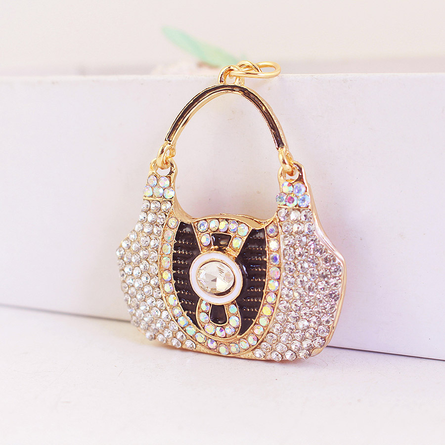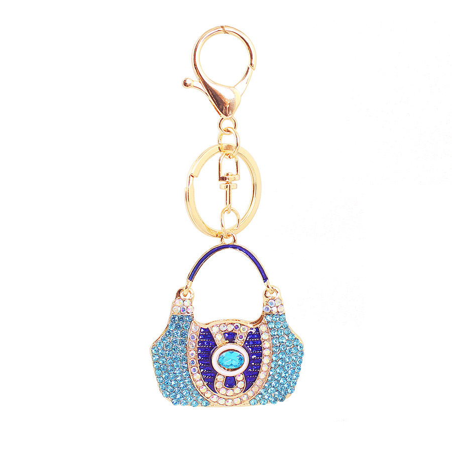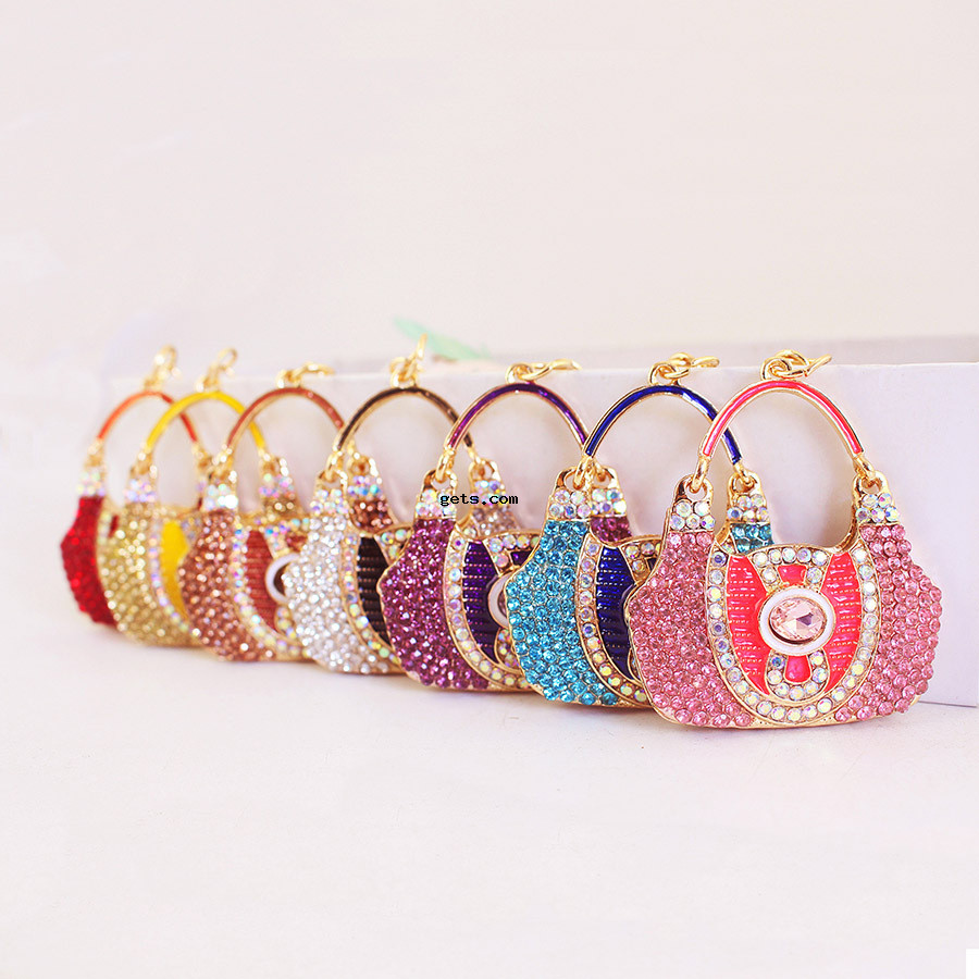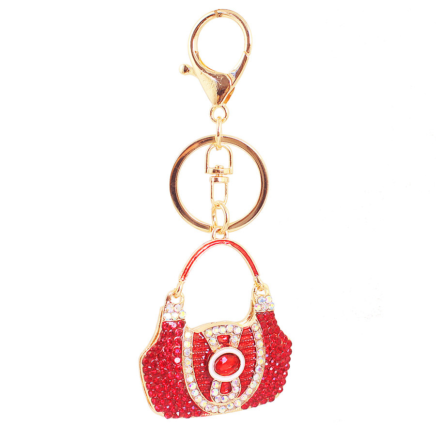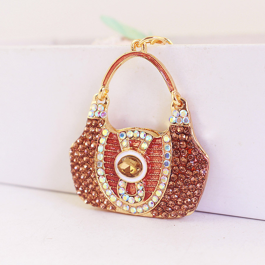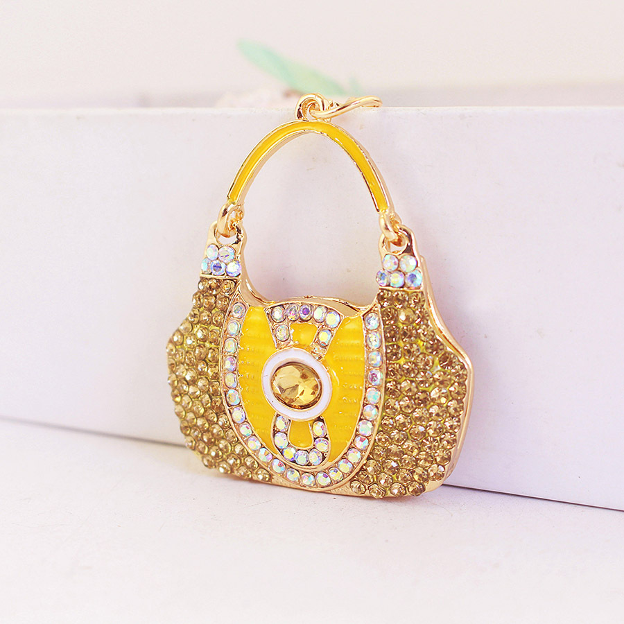 Porte-clés, alliage de zinc, sac à main, Placage de couleur d'or, émail & avec strass, plus de couleurs à choisir, 50x12x119mm, Vendu par PC
