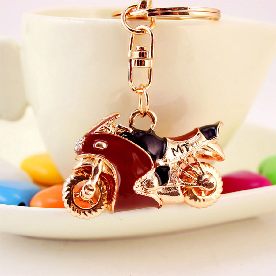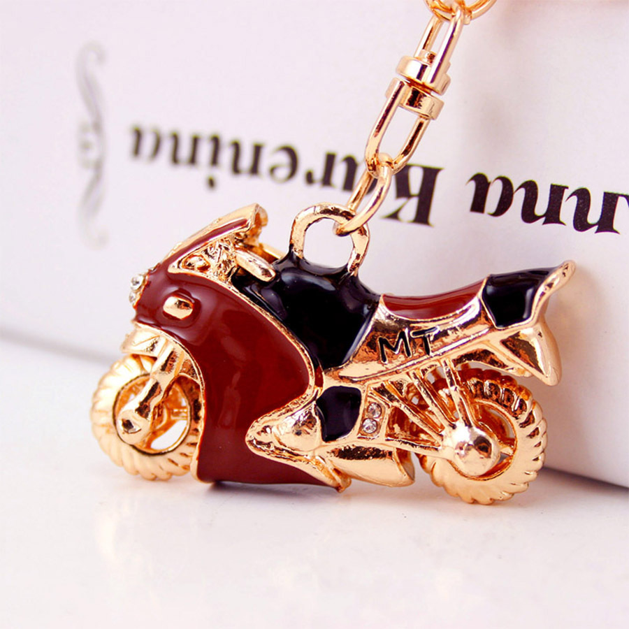 Porte-clés, alliage de zinc, moto, Placage de couleur d'or, émail & avec strass, plus de couleurs à choisir, 43x85mm, Vendu par PC