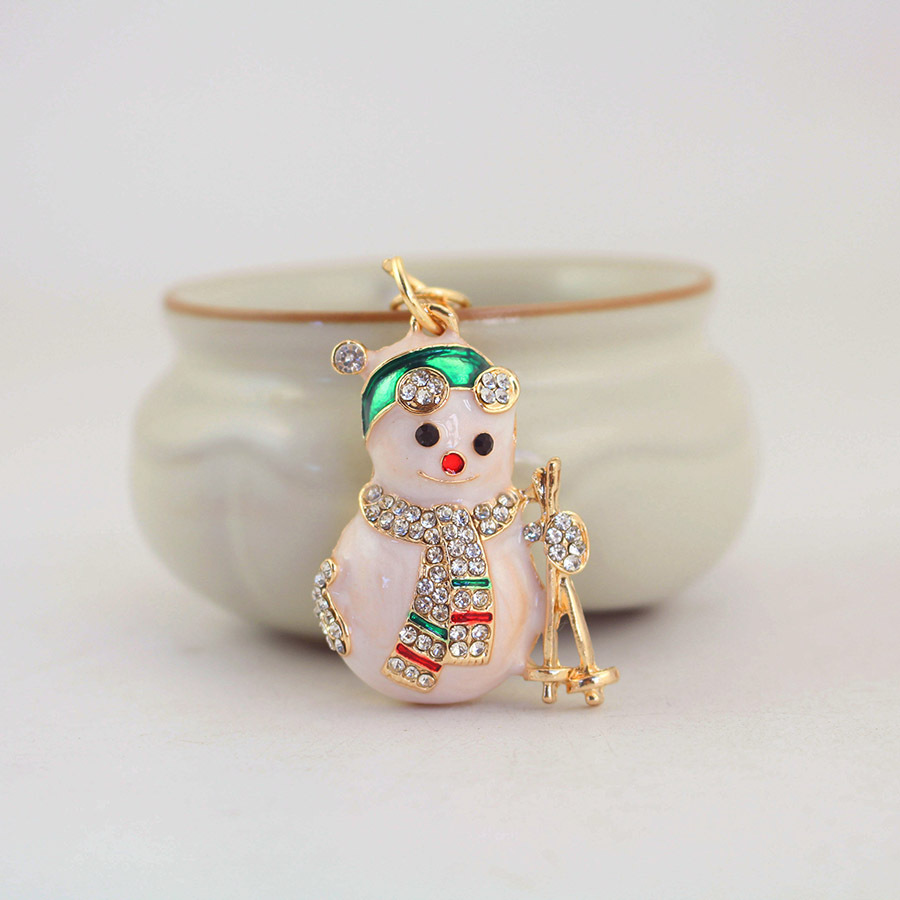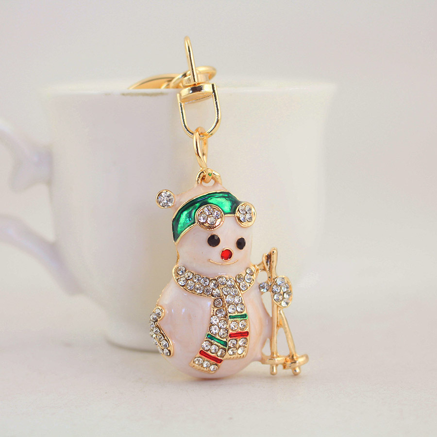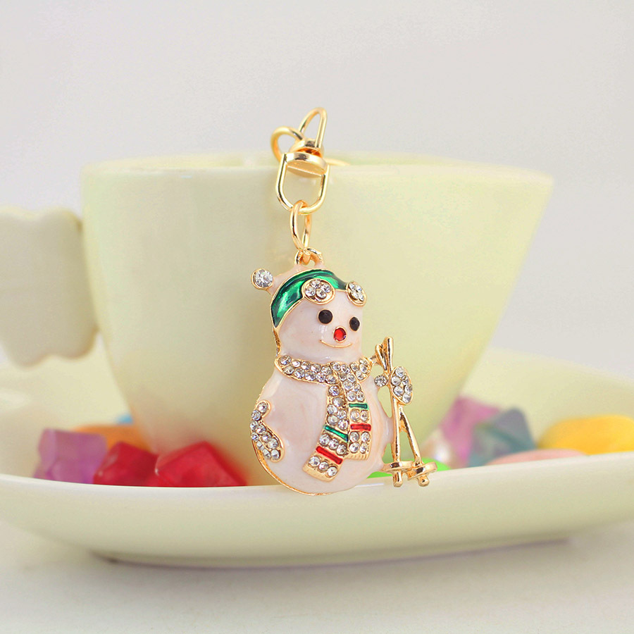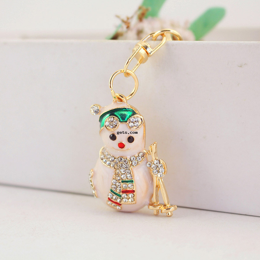Porte-clés, alliage de zinc, bonhomme de neige, Placage de couleur d'or, émail & avec strass, blanc, 31x14x103mm, Vendu par PC