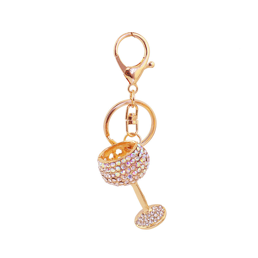 Porte-clés, alliage de zinc, tasse, Placage de couleur d'or, avec strass, plus de couleurs à choisir, 29x23x114mm, Vendu par PC