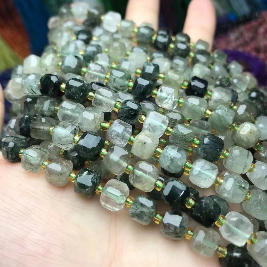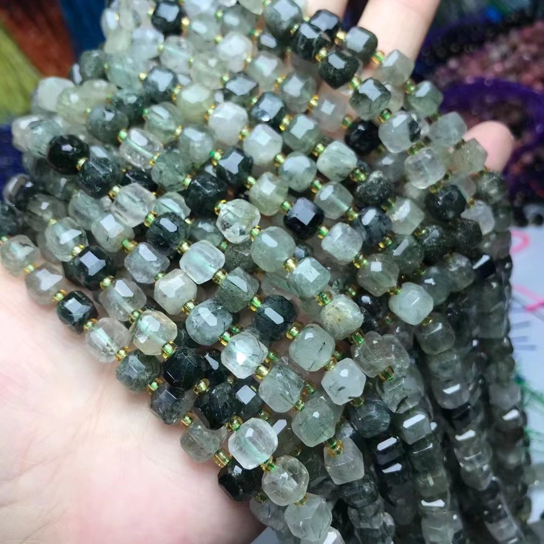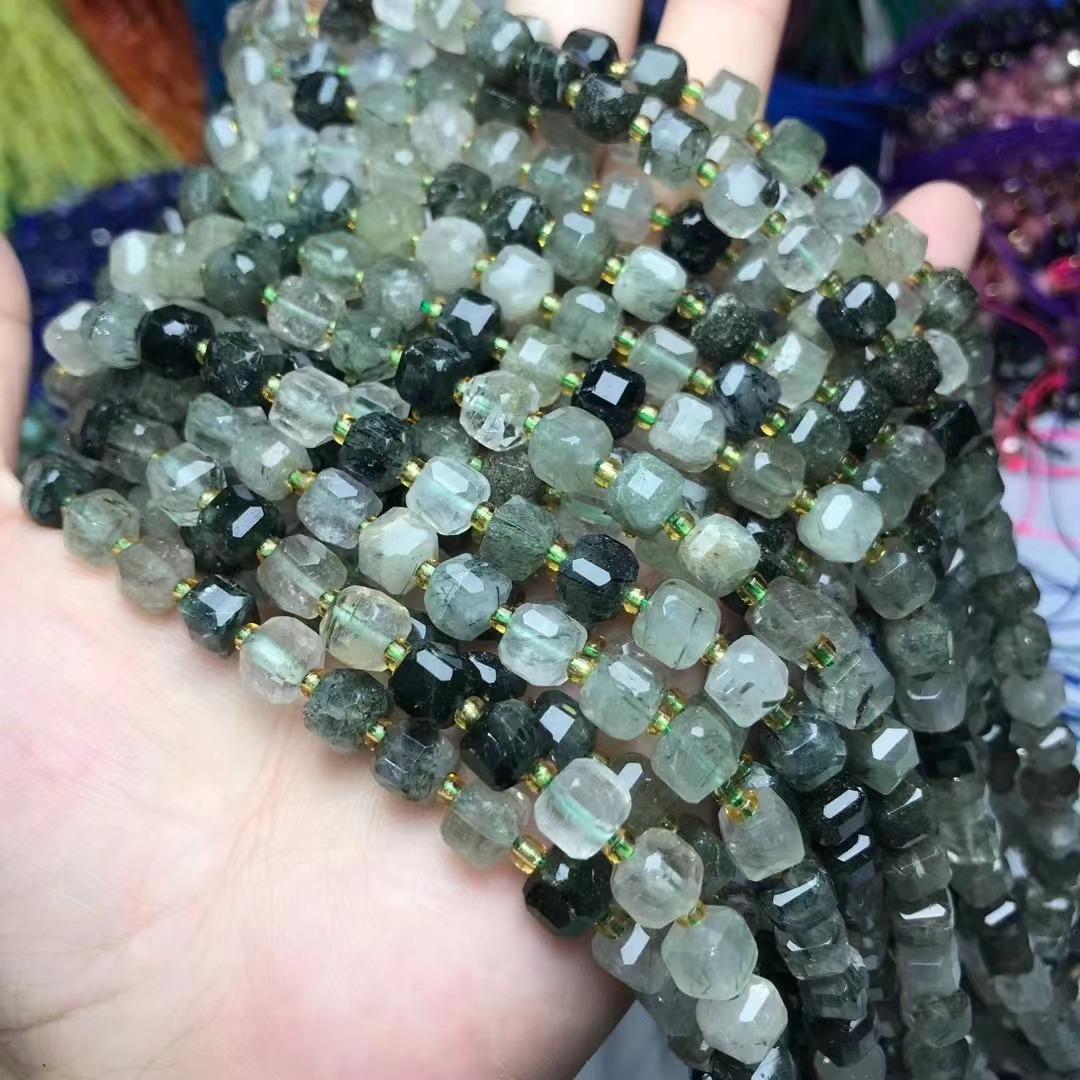 - Quartz naturel bijoux perles, Quartz Phantom Vert, Rond