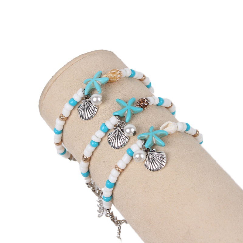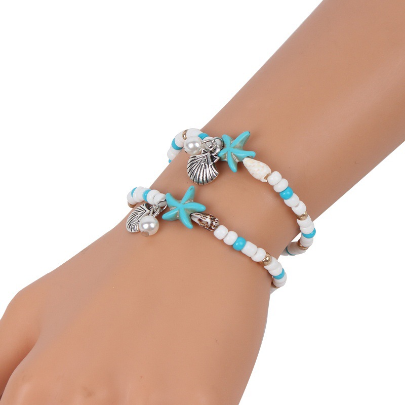 Seedbead bracelet, avec turquoise synthétique & coquille de trompette & perle de plastique & alliage de zinc, Placage, bijoux de mode, couleurs mélangées, 225mm, Longueur:22.5 cm, Vendu par PC