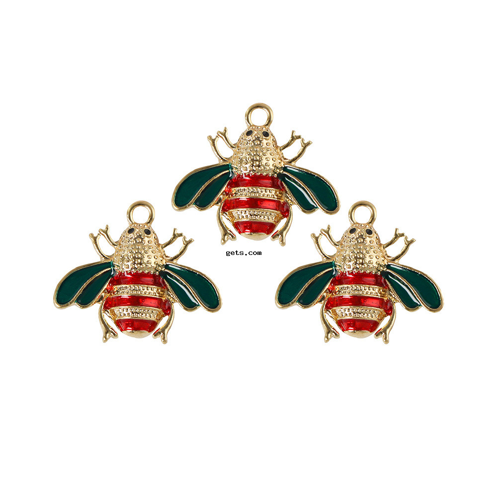 Tibetan Style émail Pendants, alliage de zinc, abeille, Placage de couleur d'or, DIY, couleurs mélangées, 100PC/sac, Vendu par sac