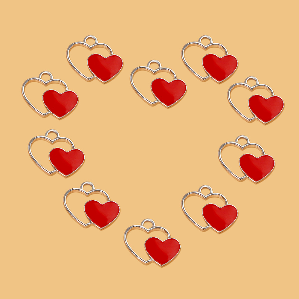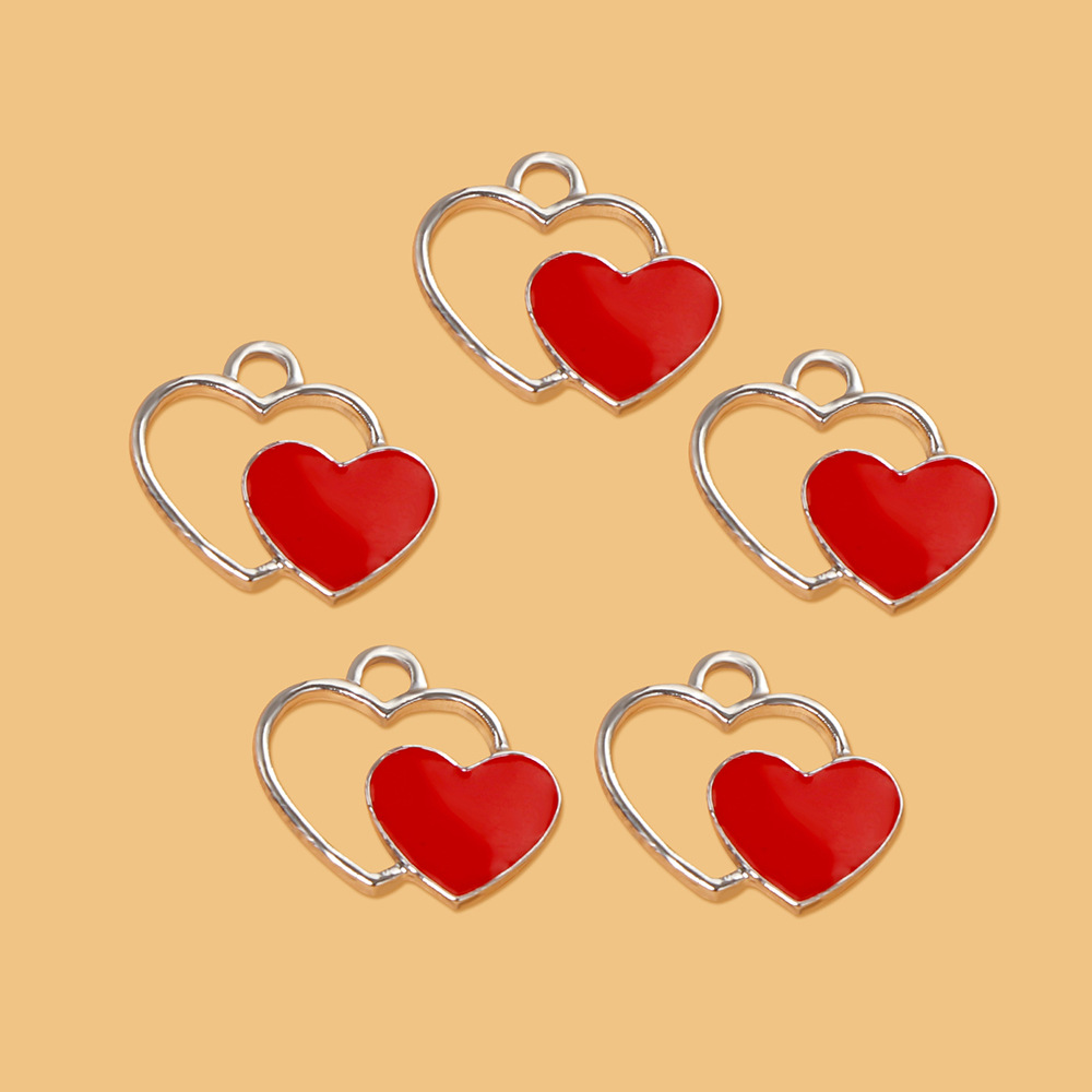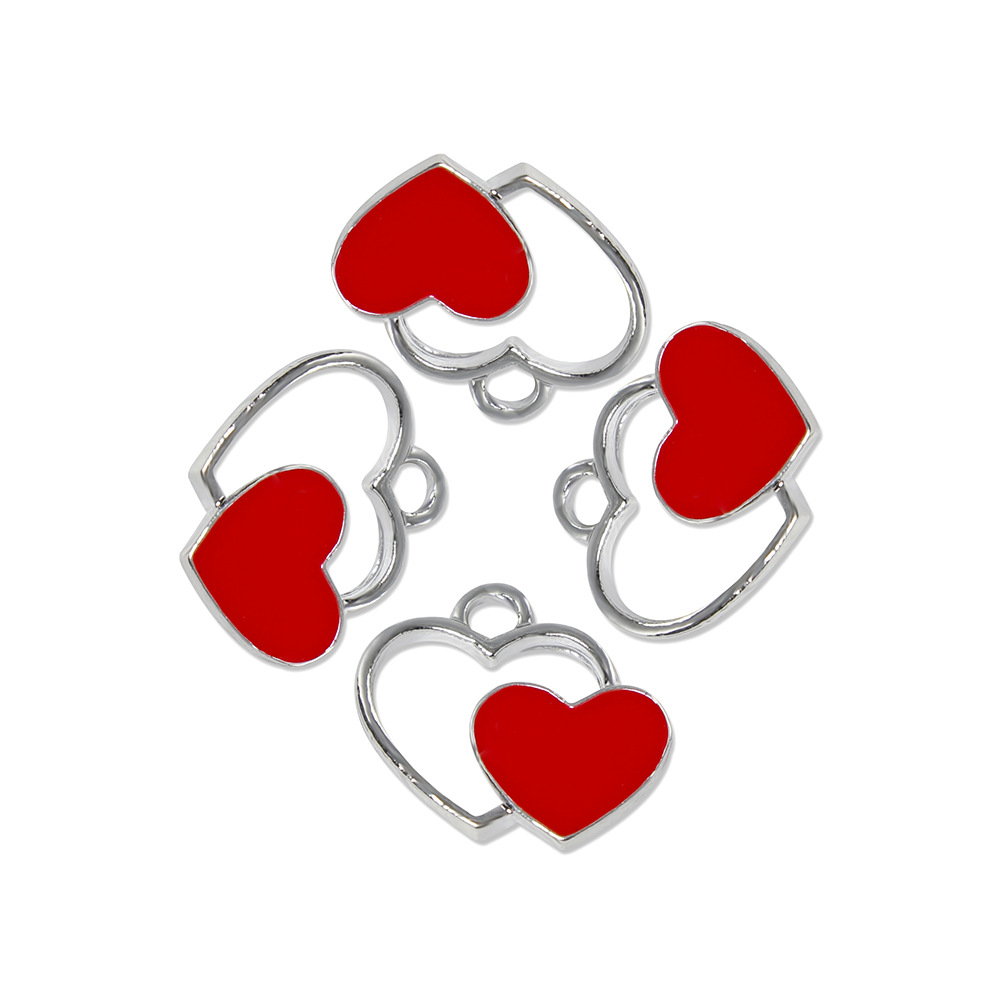 Tibetan Style émail Pendants, alliage de zinc, coeur, Placage de couleur argentée, DIY & creux, couleurs mélangées, 100PC/sac, Vendu par sac