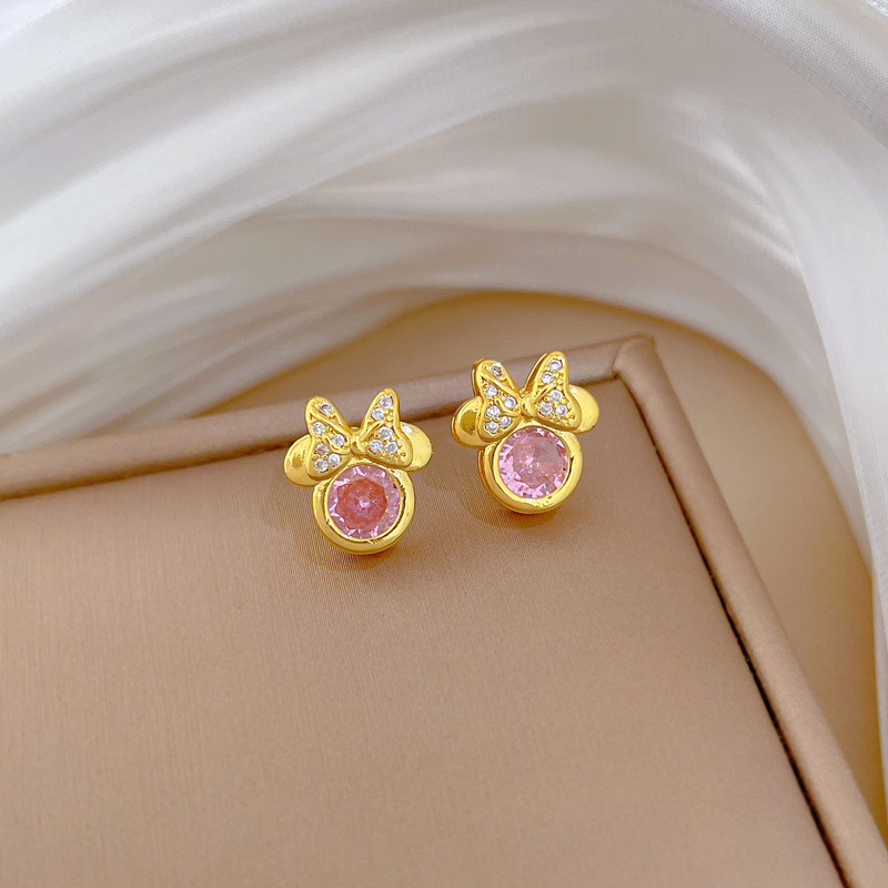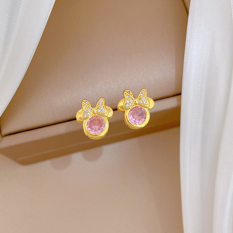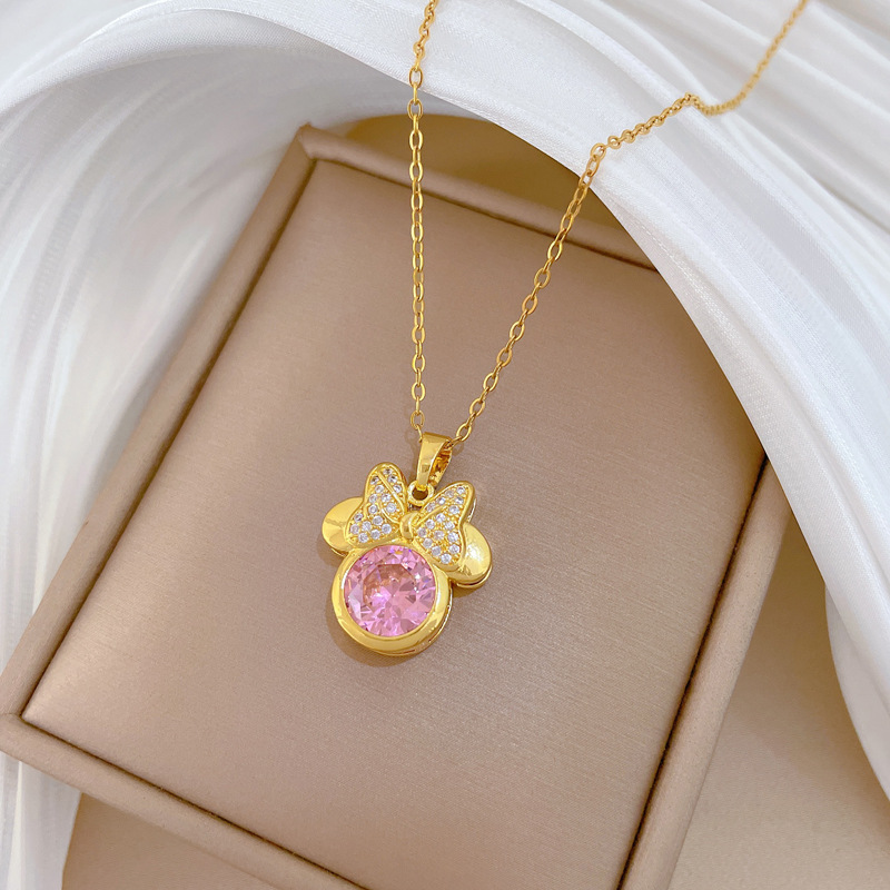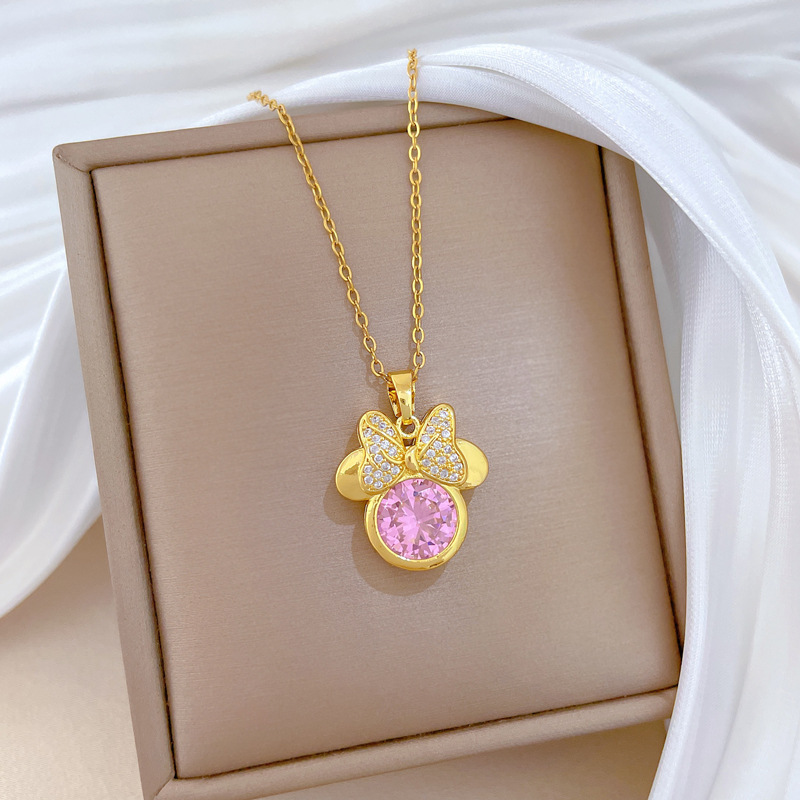 P525 necklace, titanium steel chain, copper micro-inlaid pendantP526 Stud Earrings [Copper Real Gold Electroplated]
