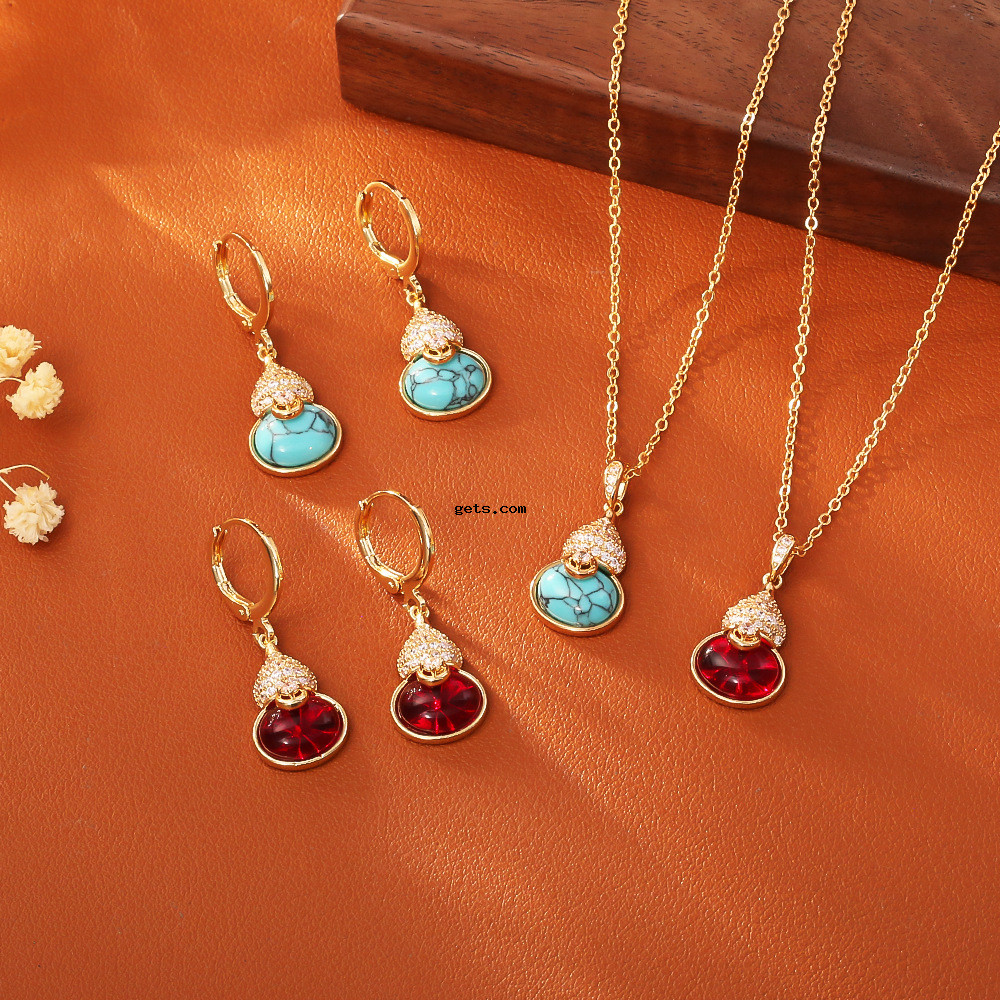 Turquoise Fu Lu Gourd necklaceRed Fu Lu Gourd necklaceTurquoise blessing gourd earringsRed Fu Lu gourd earrings