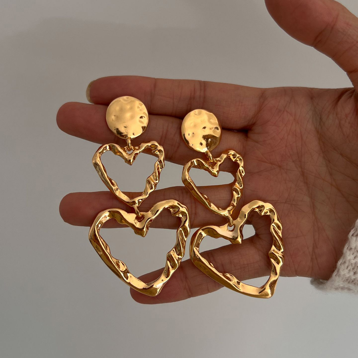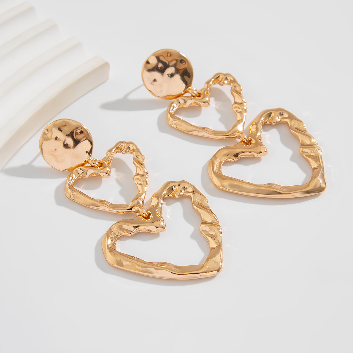 alliage de zinc Boucle d'oreille goutte, coeur, Placage, bijoux de mode & pour femme & creux, doré, Vendu par paire