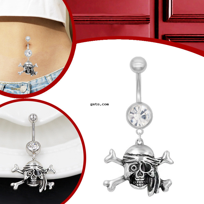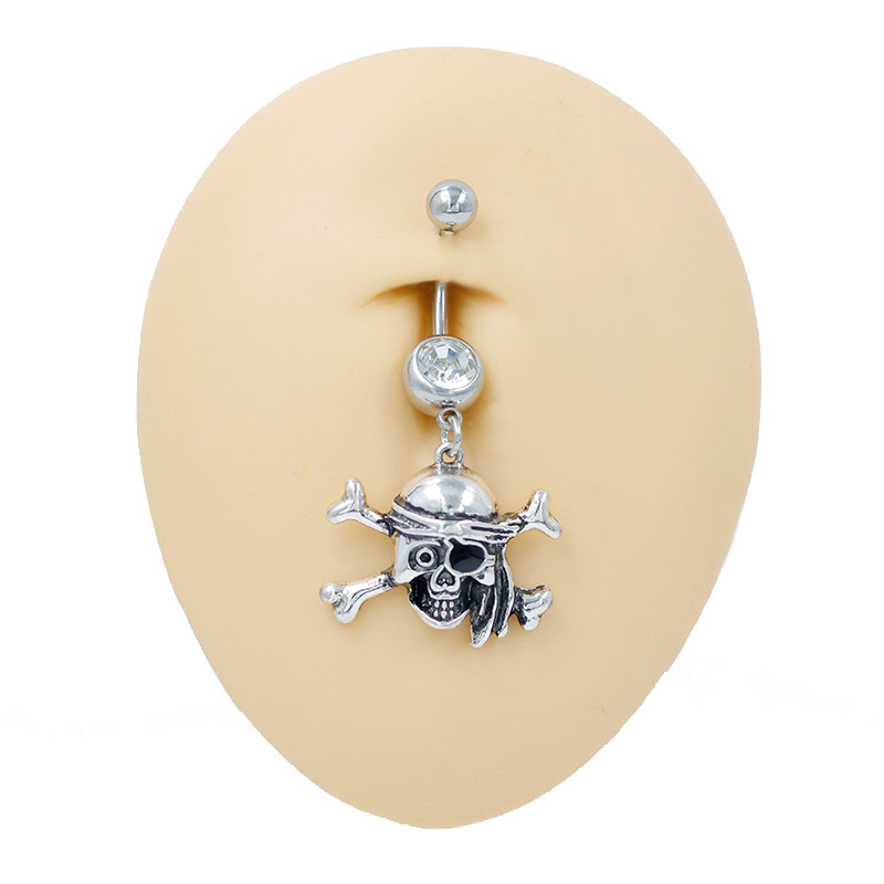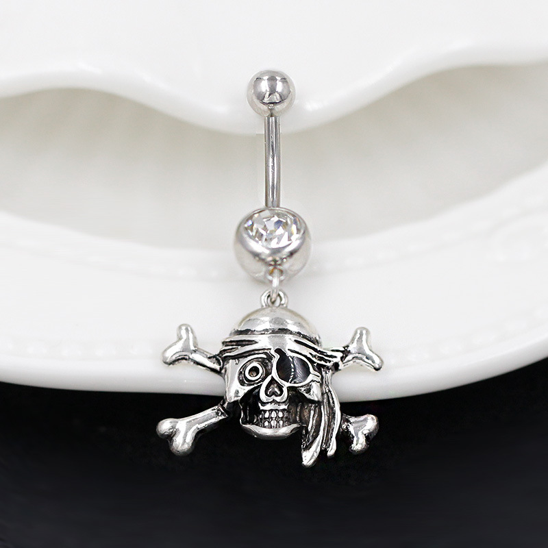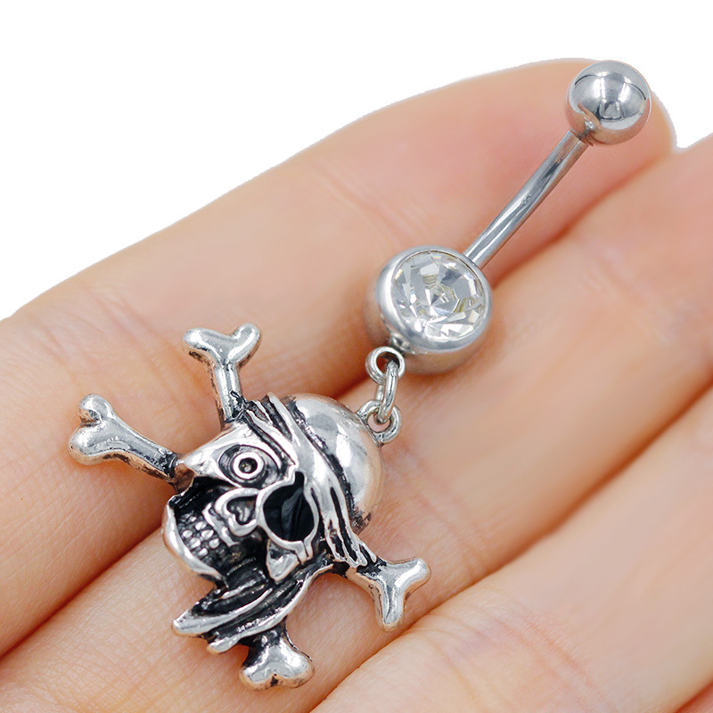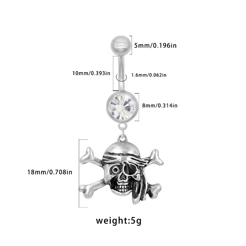 alliage de zinc anneau de ventre, crane, Placage, Halloween Design & unisexe & avec strass & noircir, Vendu par PC