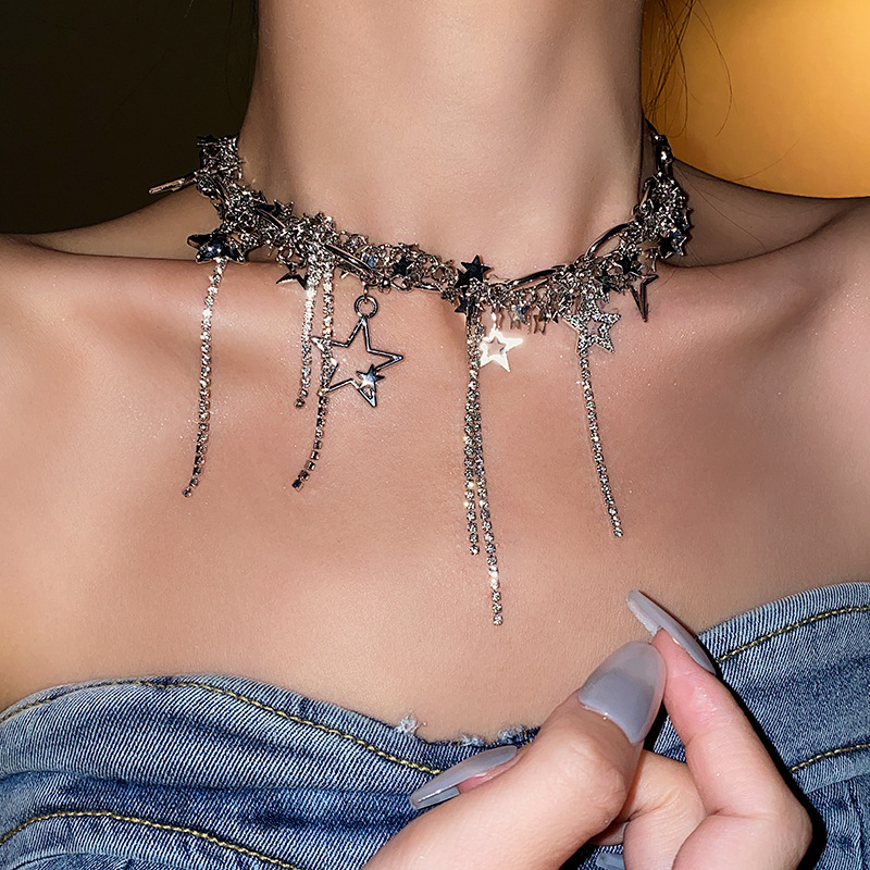 alliage de zinc collier, étoile, Placage de couleur argentée, pour femme & creux, Longueur:Environ 17.3 pouce, Vendu par PC